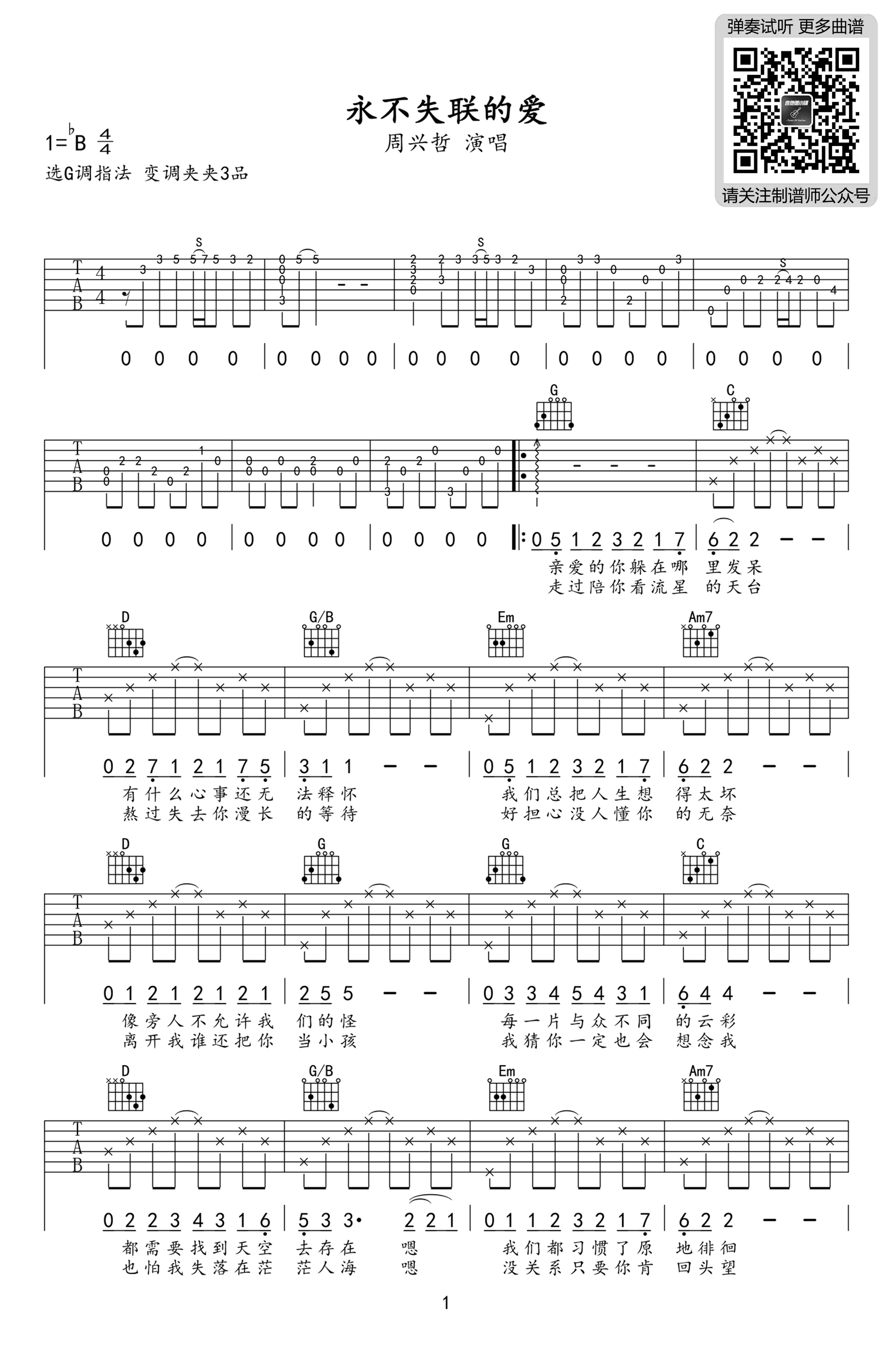 永不失联的爱吉他谱,它是周兴哲演唱的歌曲,由7T吉他教室制谱,是一首经典歌曲编配的吉他谱,演唱时可夹在第1,本谱采用周兴哲,非常好听的弹唱曲谱,下面高清曲谱由吉他部落吉它谱为大家更新分享,有喜欢吉它的朋友欢迎关......