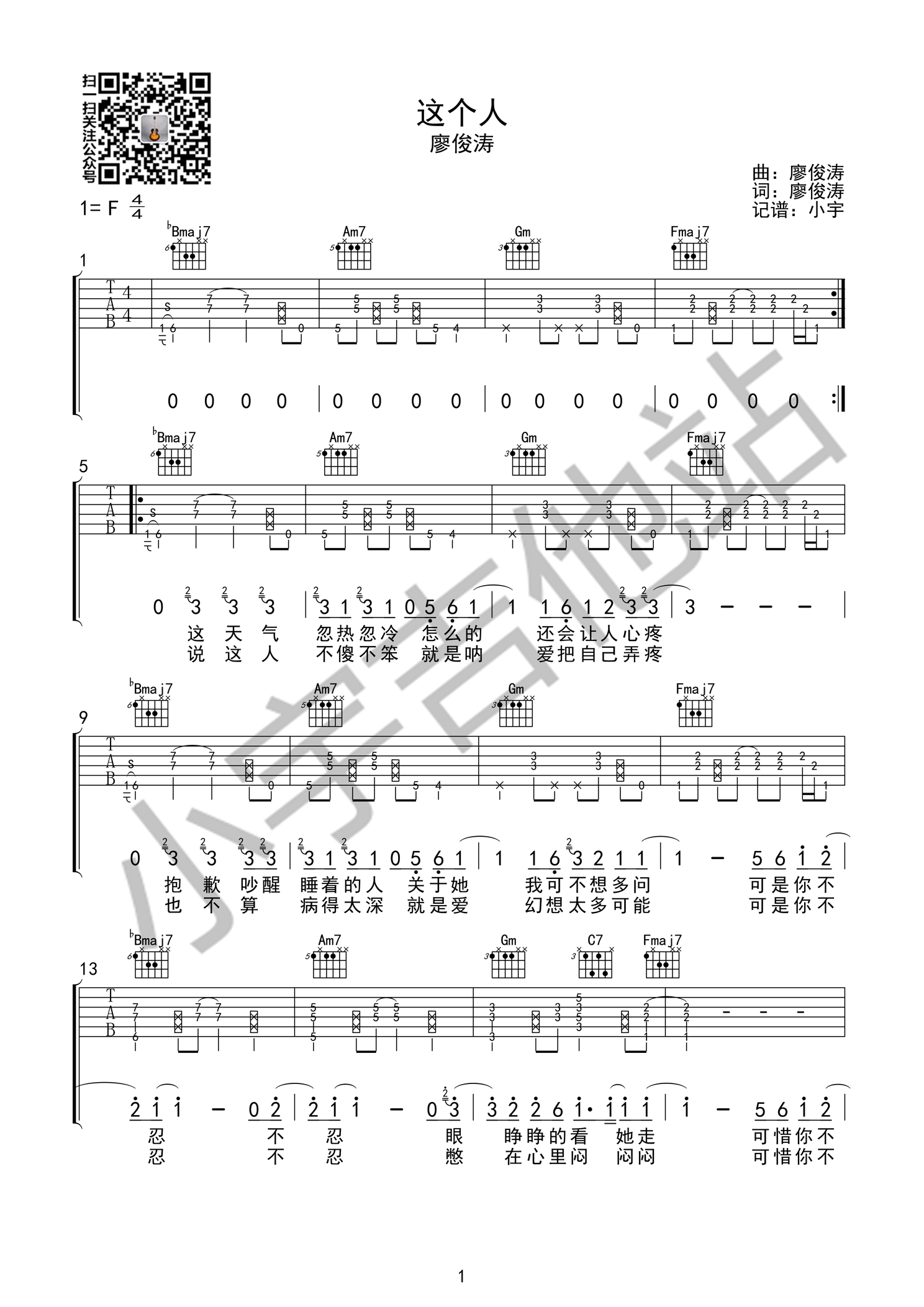 薛之谦演员吉他谱,它是薛之谦演唱的原版歌曲,经典歌曲编配的C调指弹简单版吉他谱子,六线简谱是吉他坊整理制作,原调,4/4拍子演奏速度95bmp,不夹变调夹是非常好听弹奏难度:为中等的入门弹唱曲谱,