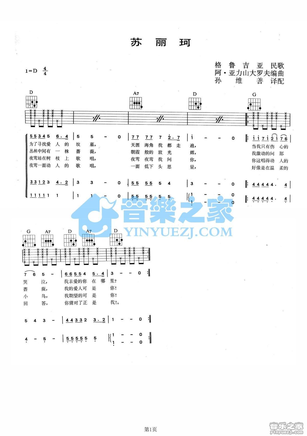 苏丽河吉他谱,取自演唱的歌曲是经典D调指弹编配的曲谱,非常好听的弹唱曲谱,下面1张高清曲谱由吉曲谱网为大家更新分享,有喜欢吉它的朋友欢迎关注!