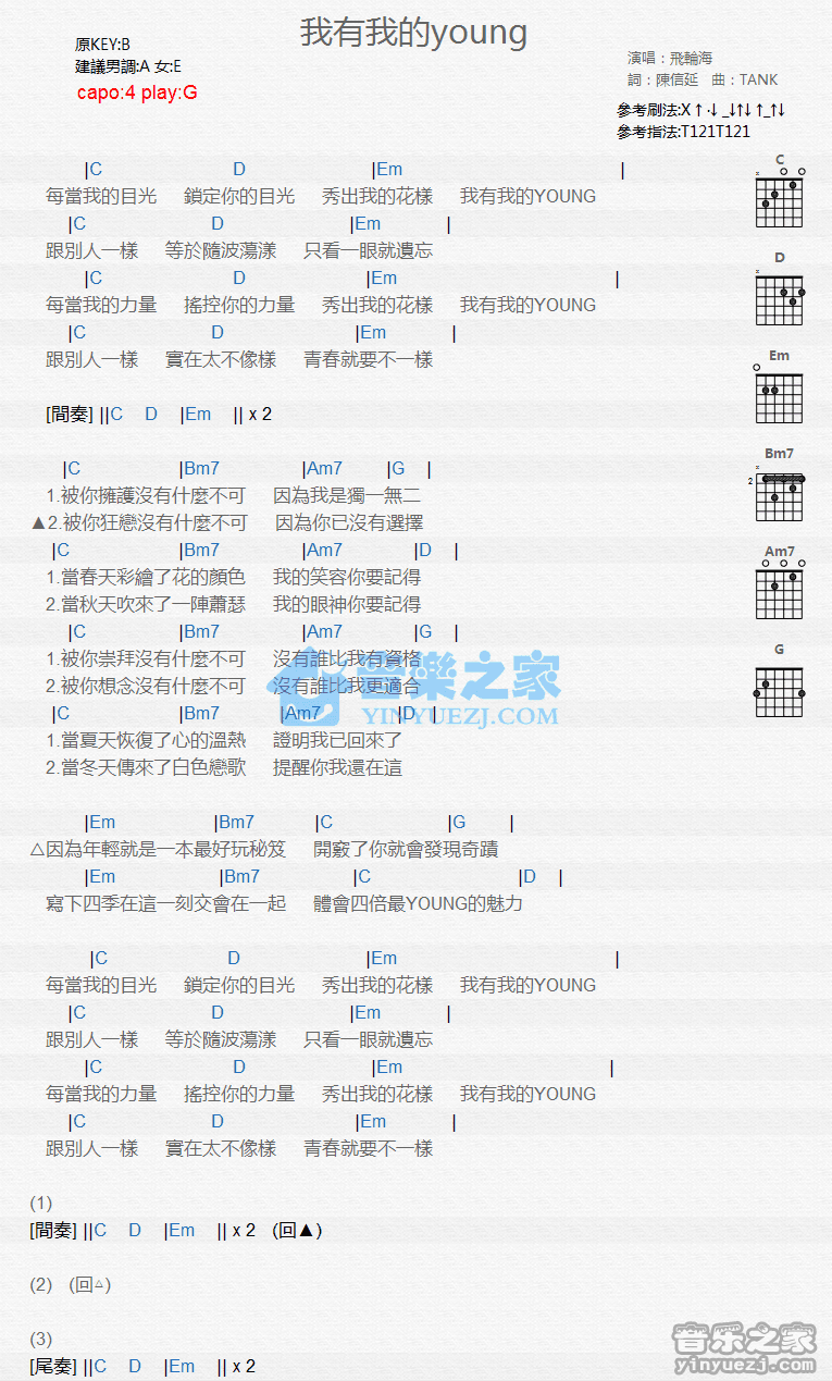 我有我的young吉他谱,原版歌曲,简单G调弹唱教学,六线谱指弹简谱1张图
