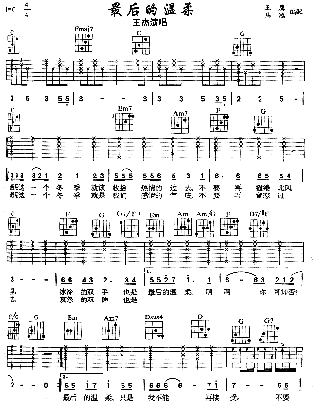 还没有爱够吉他谱,它是王馨演唱的原版歌曲,经典歌曲编配的C调指弹简单版吉他谱子,六线简谱是吉他坊整理制作,原调,4/4拍子演奏速度95bmp,不夹变调夹是非常好听弹奏难度:为中等的入门弹唱曲谱,