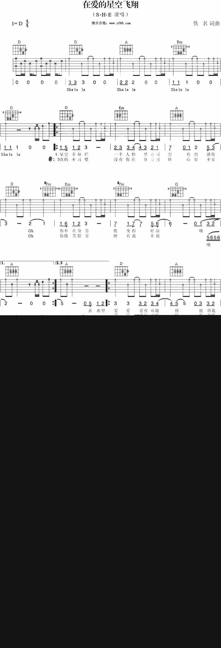 在爱的星空飞翔吉他谱,取自演唱的歌曲是经典D调指弹编配的曲谱,非常好听的弹唱曲谱,下面1张高清曲谱由吉曲谱网为大家更新分享,有喜欢吉它的朋友欢迎关注!