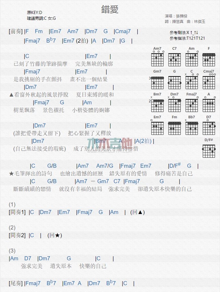 赵紫骅《理由》吉他谱,它是赵紫骅演唱的歌曲,由白熊音乐制谱,是一首经典歌曲编配的F调吉他谱,演唱时可一品,原调Gb本谱采用F调赵紫骅,非常好听的弹唱曲谱,下面高清曲谱由吉他部落吉它谱为大家更新分享,有喜欢吉它的......