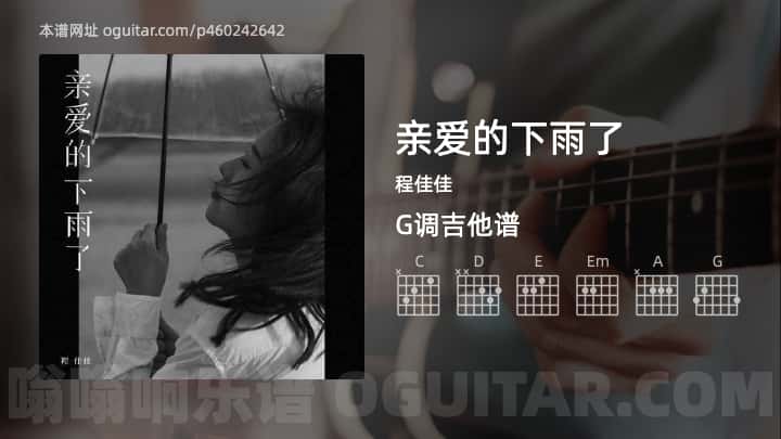 亲爱的下雨了吉它谱,它是程佳佳演唱的歌曲,是一首经典歌曲G调编配的吉他简谱,演唱时可降半调,《亲爱的下雨了》原调为F#本谱采用G调,是非常好听的弹唱曲谱,下面5张高清曲谱由极网吉它谱为大家更新分享,有喜欢吉它的......