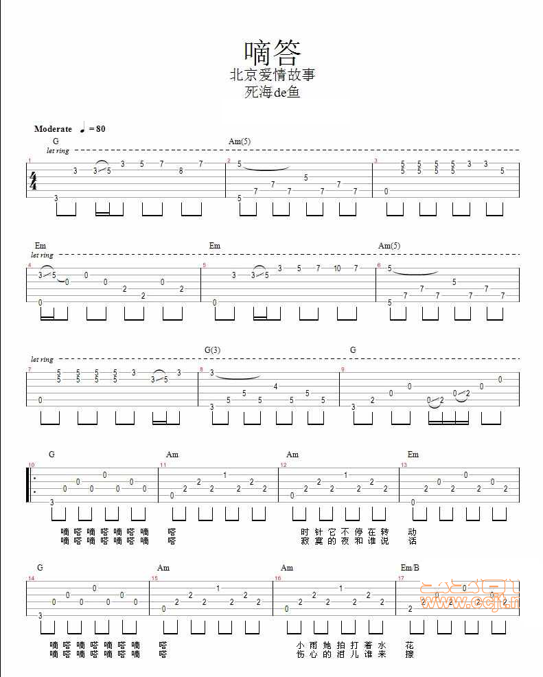 一吉他谱,取自演唱的歌曲是经典C调指弹编配的曲谱,非常好听的弹唱曲谱,下面1张高清曲谱由吉曲谱网为大家更新分享,有喜欢吉它的朋友欢迎关注!