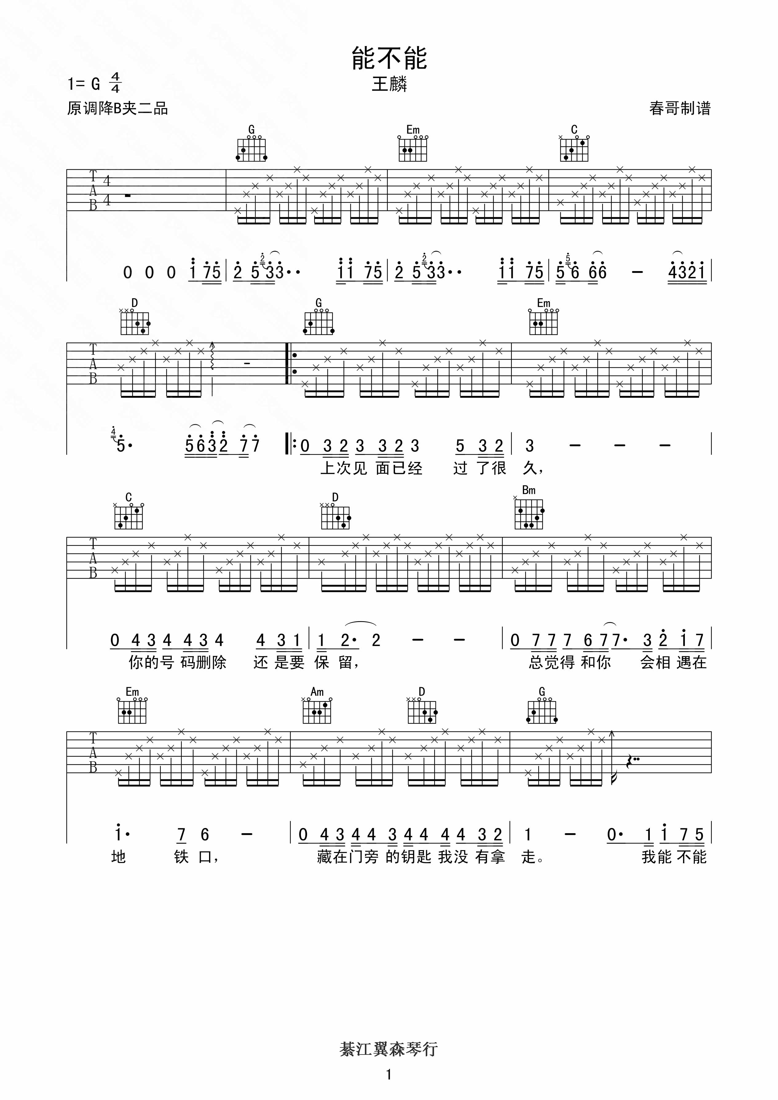下次如果离开你吉他谱,取自演唱的歌曲是经典E调指弹编配的曲谱,非常好听的弹唱曲谱,下面1张高清曲谱由吉曲谱网为大家更新分享,有喜欢吉它的朋友欢迎关注!