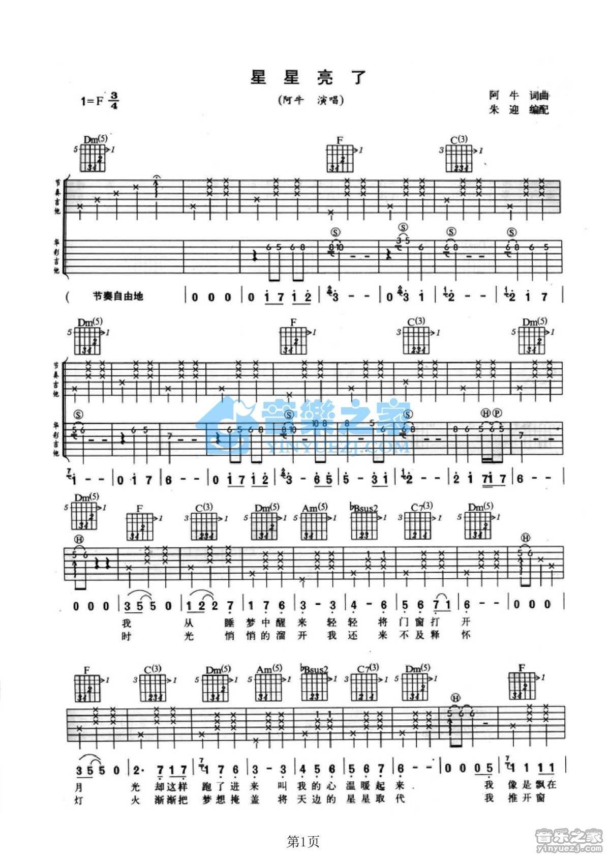 月亮拥抱我吉他谱,它是由房东的猫演唱的歌曲,由破晓制谱,经典的F调吉他指弹简谱,也是非常好听的低难度的弹唱曲谱,下面极网吉它谱为大家分享高清六线谱图片教学,有喜欢吉它的朋友欢迎关注