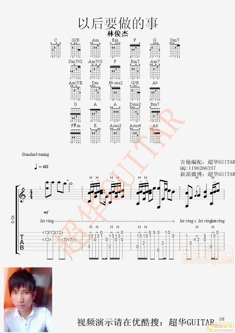 以后要做的事吉他谱,简单C调原版指弹曲谱,林俊杰高清流行弹唱超华GUITAR编配六线乐谱
