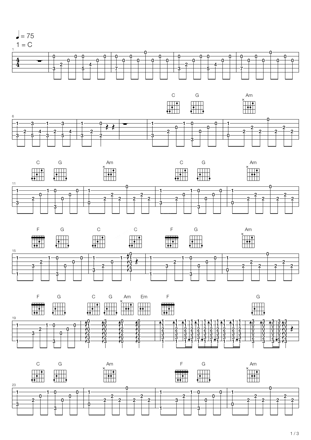 爱很简单吉他谱,取自演唱的歌曲是经典C调指弹编配的曲谱,非常好听的弹唱曲谱,下面1张高清曲谱由吉曲谱网为大家更新分享,有喜欢吉它的朋友欢迎关注!