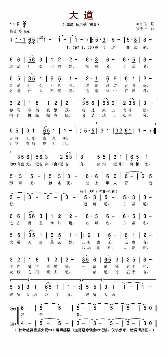 大道吉他谱,取自演唱的歌曲是经典E调指弹编配的曲谱,非常好听的弹唱曲谱,下面1张高清曲谱由吉曲谱网为大家更新分享,有喜欢吉它的朋友欢迎关注!