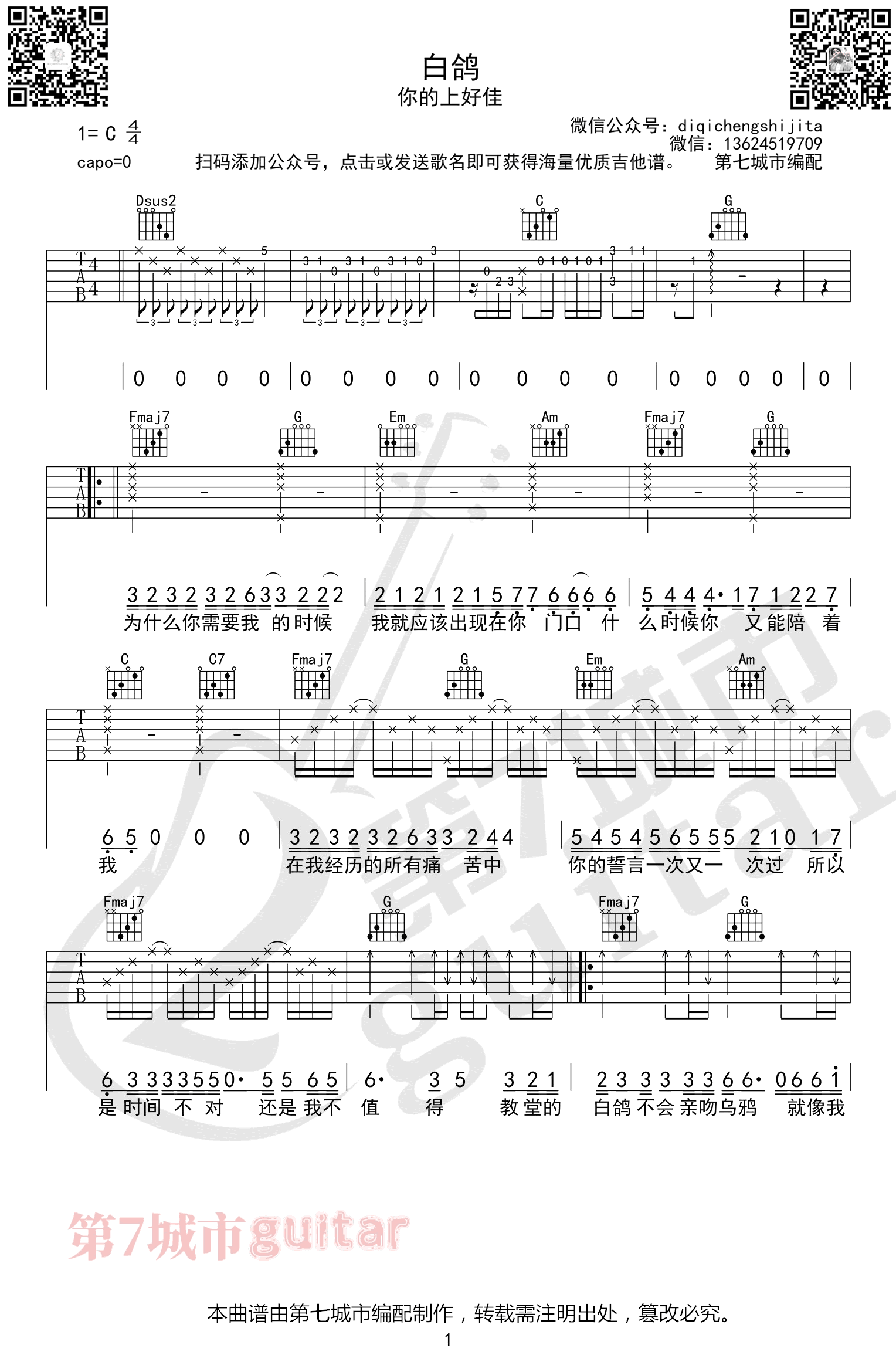 不要等我回来吉他谱,取自演唱的歌曲是经典C调指弹编配的曲谱,非常好听的弹唱曲谱,下面2张高清曲谱由吉曲谱网为大家更新分享,有喜欢吉它的朋友欢迎关注!