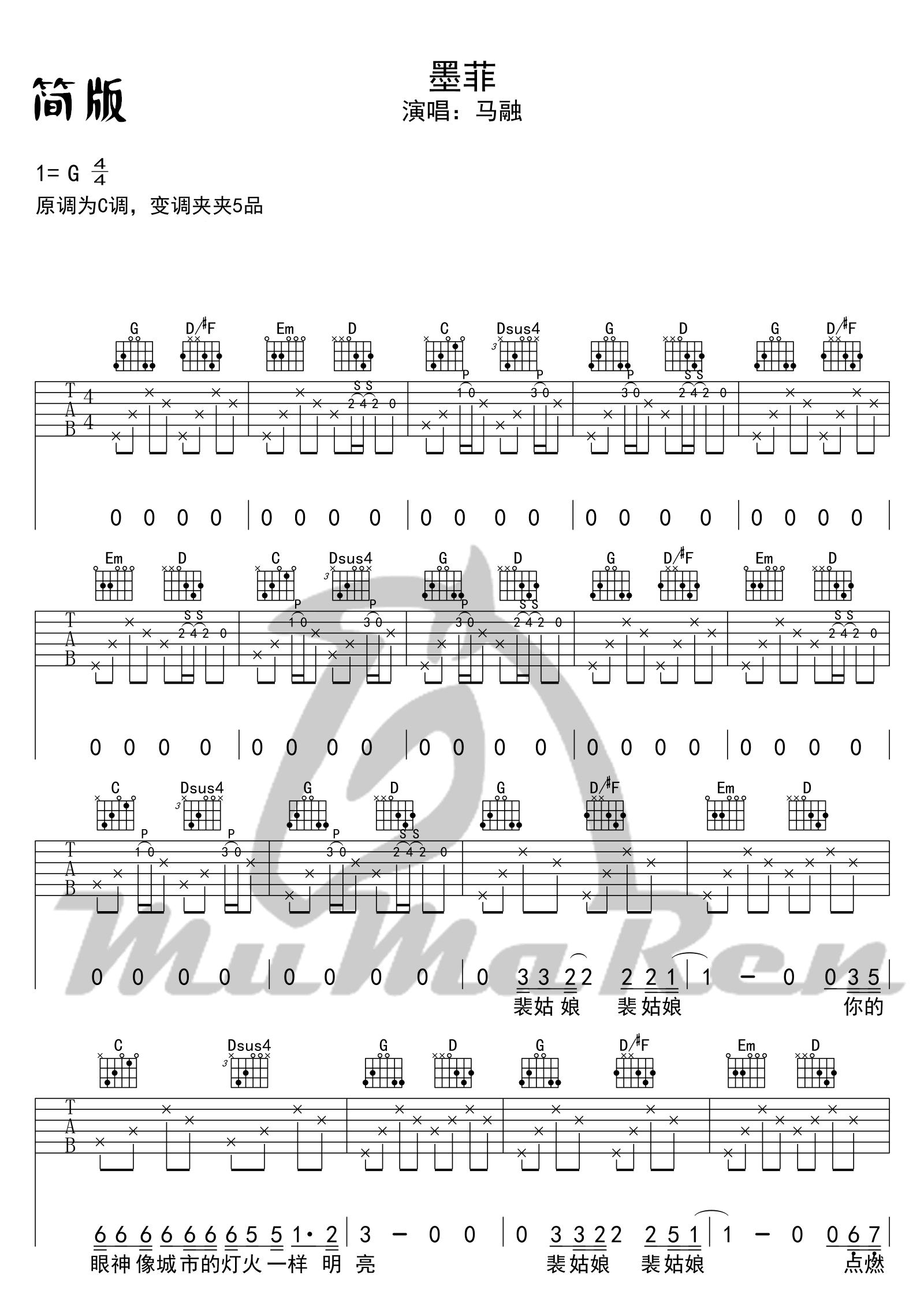 毛不易 不染 简单 唯音悦制谱G吉他谱,取自演唱的歌曲是经典G调指弹编配的曲谱,非常好听的弹唱曲谱,下面2张高清曲谱由吉曲谱网为大家更新分享,有喜欢吉它的朋友欢迎关注!