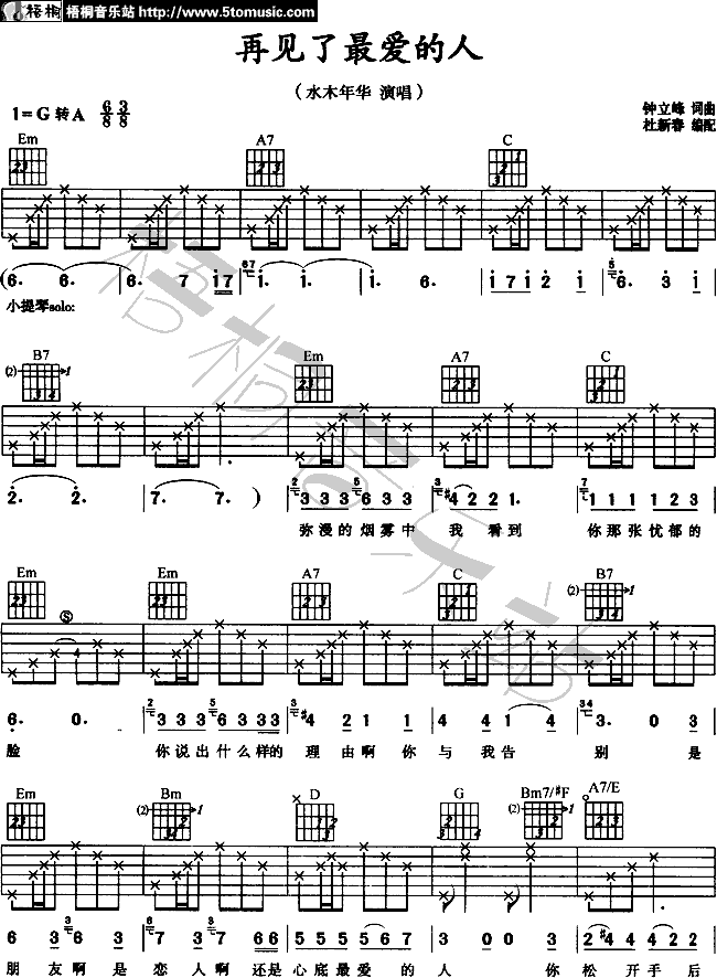 如果您想要学习安又琪演唱的《有你陪着我》的吉他谱,那么您来对地方了。这首弹唱简谱这个完整版弹唱简谱是由阿潘音乐工场制谱编配的,适合新手入门学习A调教学吉他谱。这是一首非常好听的歌曲,下面高清图片谱由极网