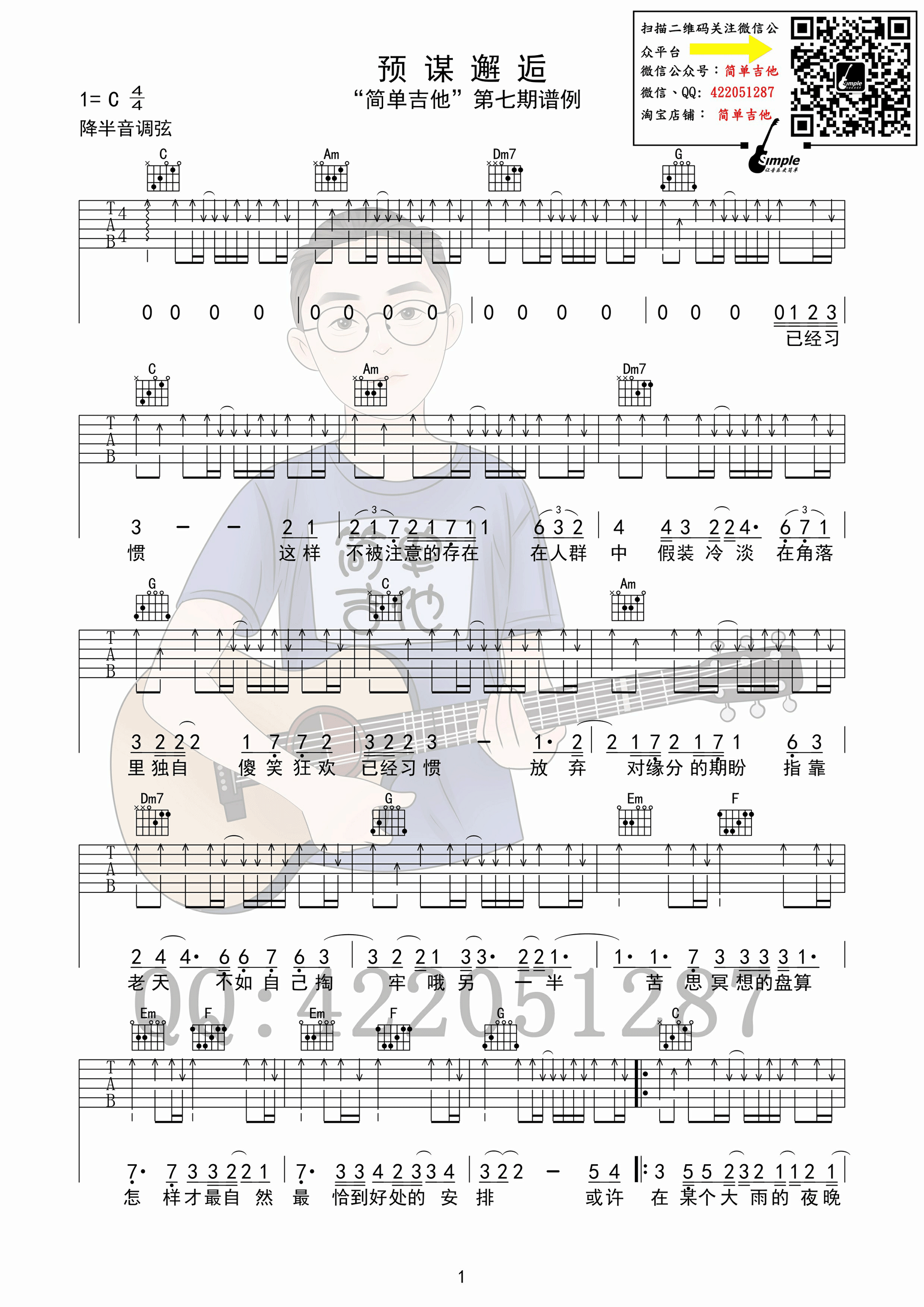 预谋邂逅 阿肆 C调完美原版编配弹唱谱吉他谱,取自演唱的歌曲是经典C调指弹编配的曲谱,非常好听的弹唱曲谱,下面4张高清曲谱由吉曲谱网为大家更新分享,有喜欢吉它的朋友欢迎关注!