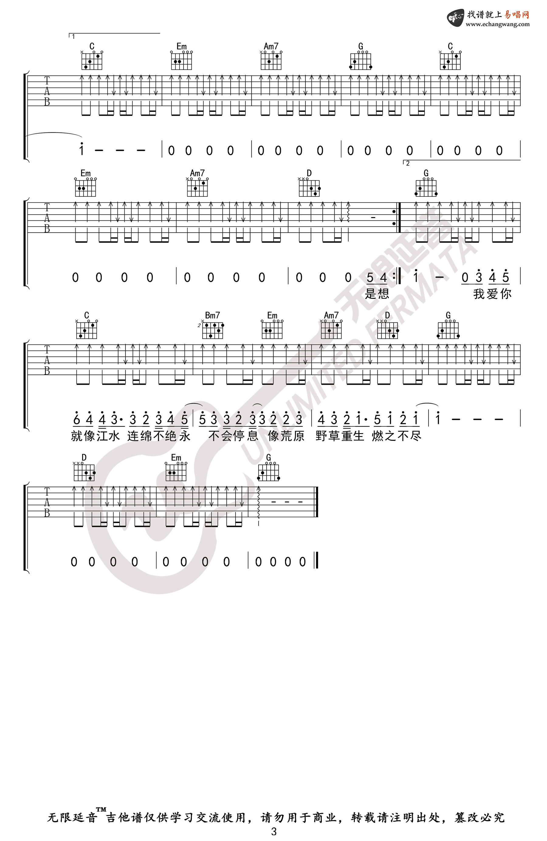 我爱你不问归期吉他谱,林华勇歌曲,G调简单指弹教学简谱,无限延音六线谱图片