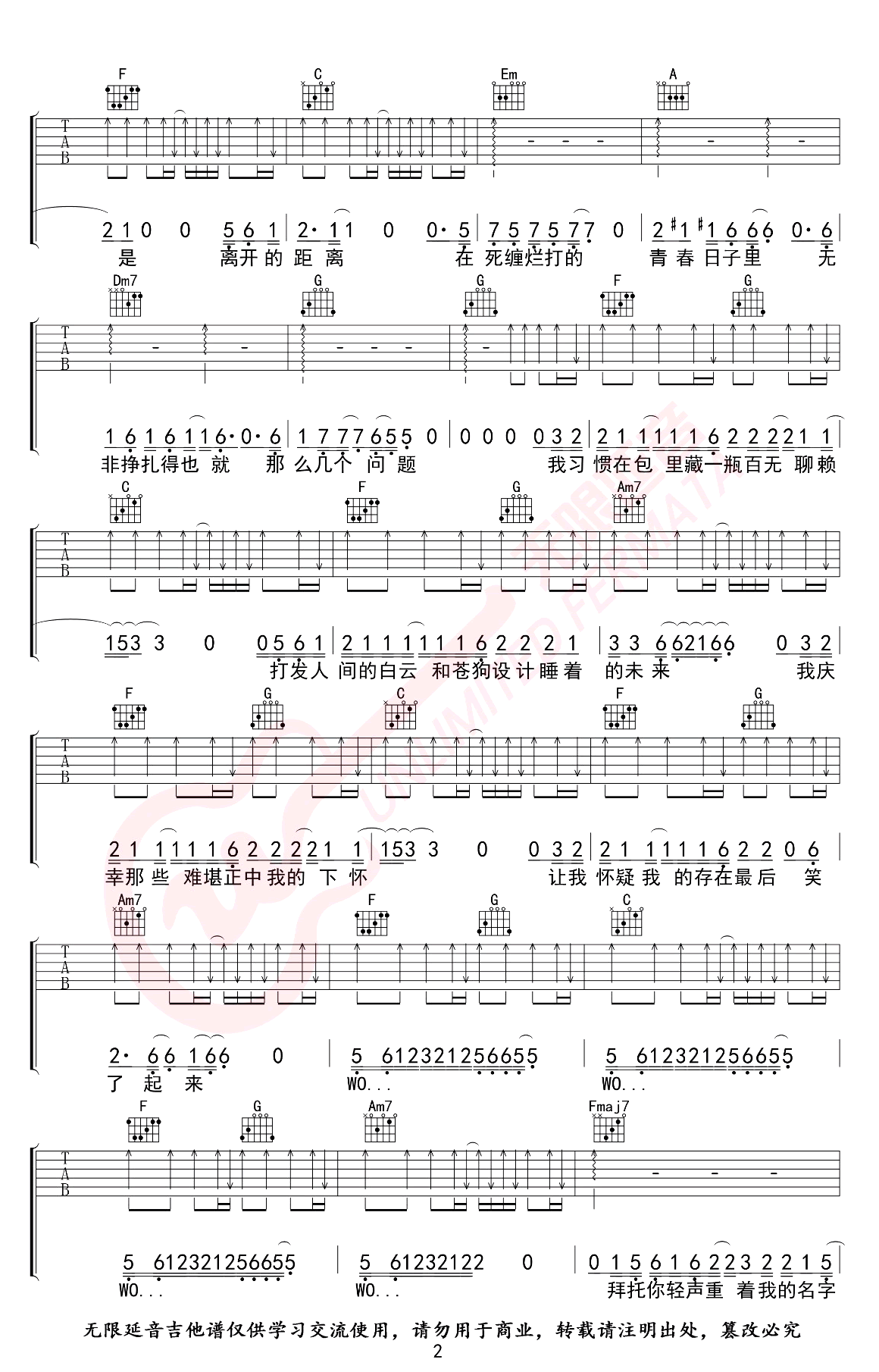 焦迈奇我的名字吉他谱,简单C调原版指弹曲谱,焦迈奇高清六线乐谱