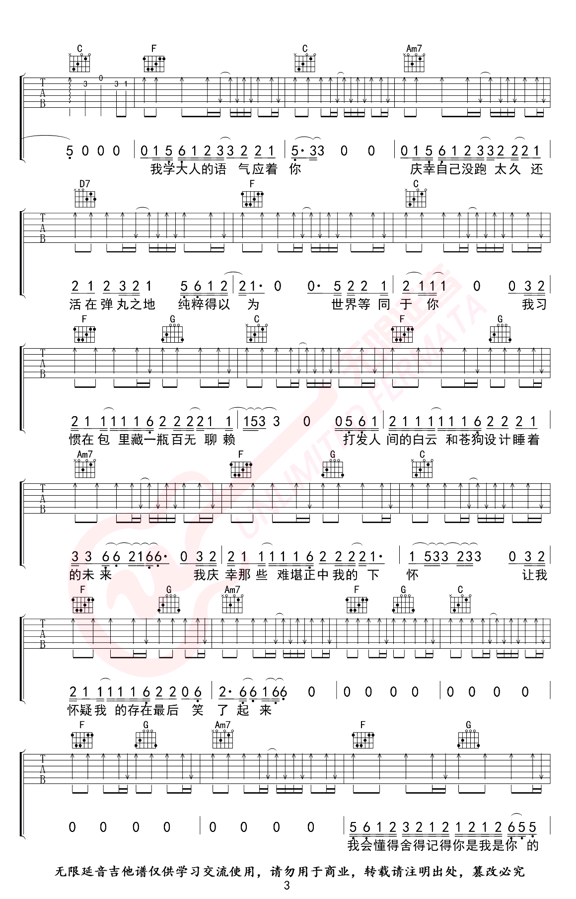 父亲吉他谱,取自演唱的歌曲是经典C调指弹编配的曲谱,非常好听的弹唱曲谱,下面3张高清曲谱由吉曲谱网为大家更新分享,有喜欢吉它的朋友欢迎关注!