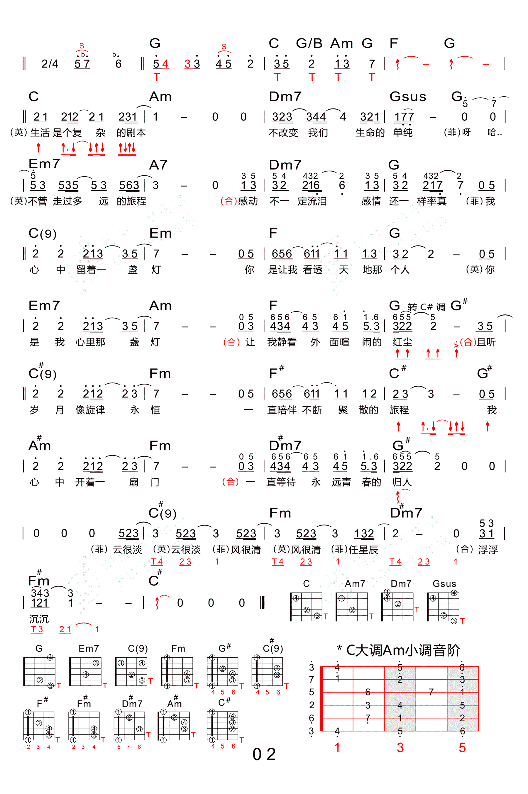 我和我的祖国吉他谱,简单C调原版指弹曲谱,王菲高清流行弹唱C调版六线乐谱