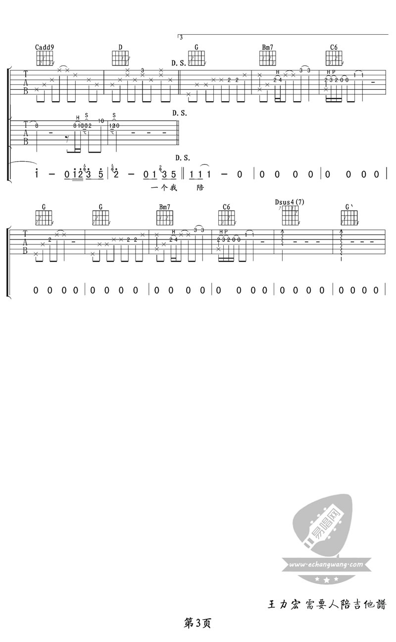 王力宏需要人陪吉他谱,简单图片原版指弹曲谱,王力宏高清六线乐谱