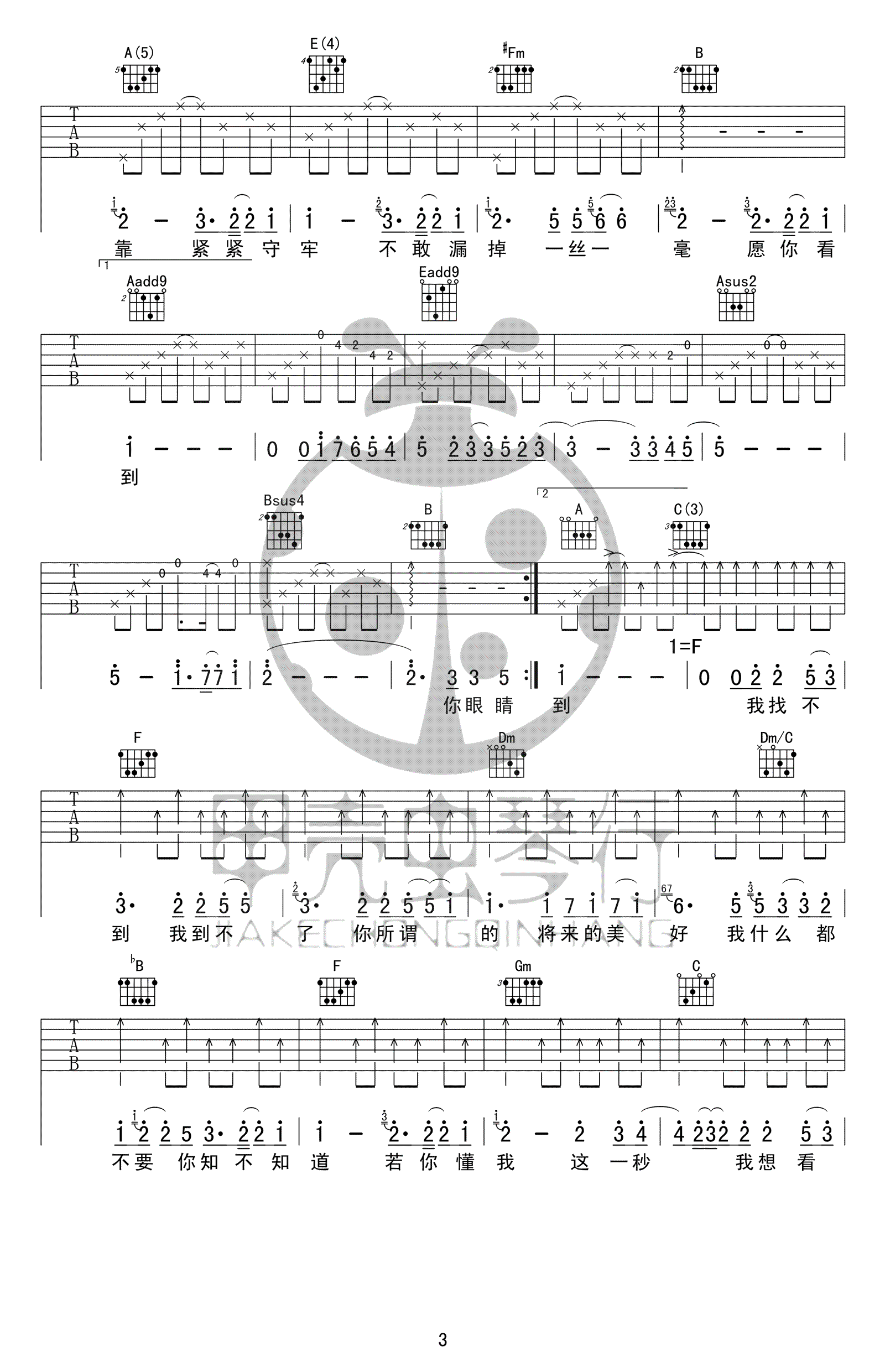 范玮琪到不了吉他谱,简单四张原版指弹曲谱,范玮琪高清六线乐谱