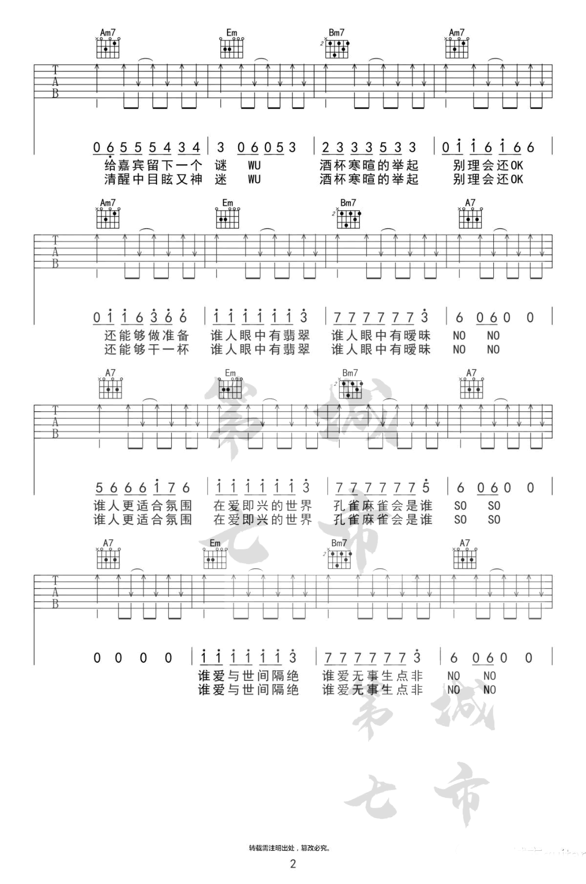 《孔雀吉他谱》_任然_G调 图二