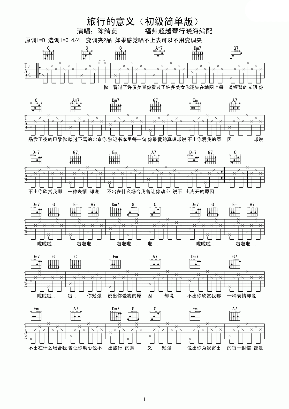 以上就是陈绮贞旅行的意义相关的内容,如果正是您所寻找的陈绮贞六线高清图片谱,希望能收藏本站,这里会源源不断更新各种的曲谱。