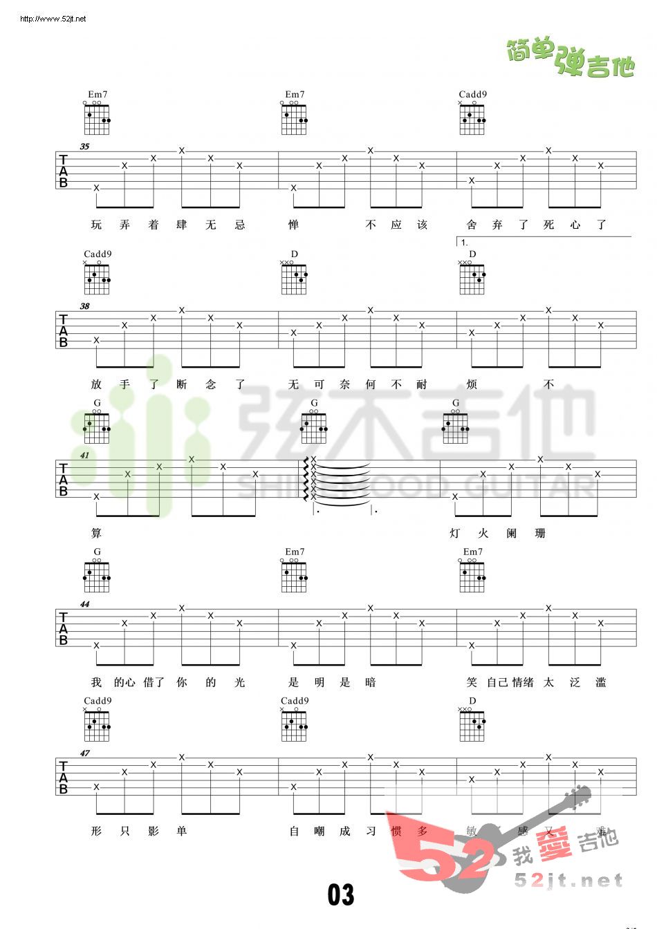 《小半》吉他谱,由陈粒演唱的,民谣弦木吉他简单弹吉他吉他谱视频,小半六线谱,C调制法,一共5张高清弹唱图片谱,采用'4/4拍子,拍速为60-80,单吉他,弹奏难度为:简单,吉他部落 jita2012.com整理上传。小半 吉他简谱小半 歌词 作曲 : 陈粒 作词 : 涂玲子不敢回看左顾右盼不自然的暗自喜欢偷偷搭讪总没完地坐立难安试探说晚安 多空泛又心酸低头呢喃对你的偏爱太过于明目