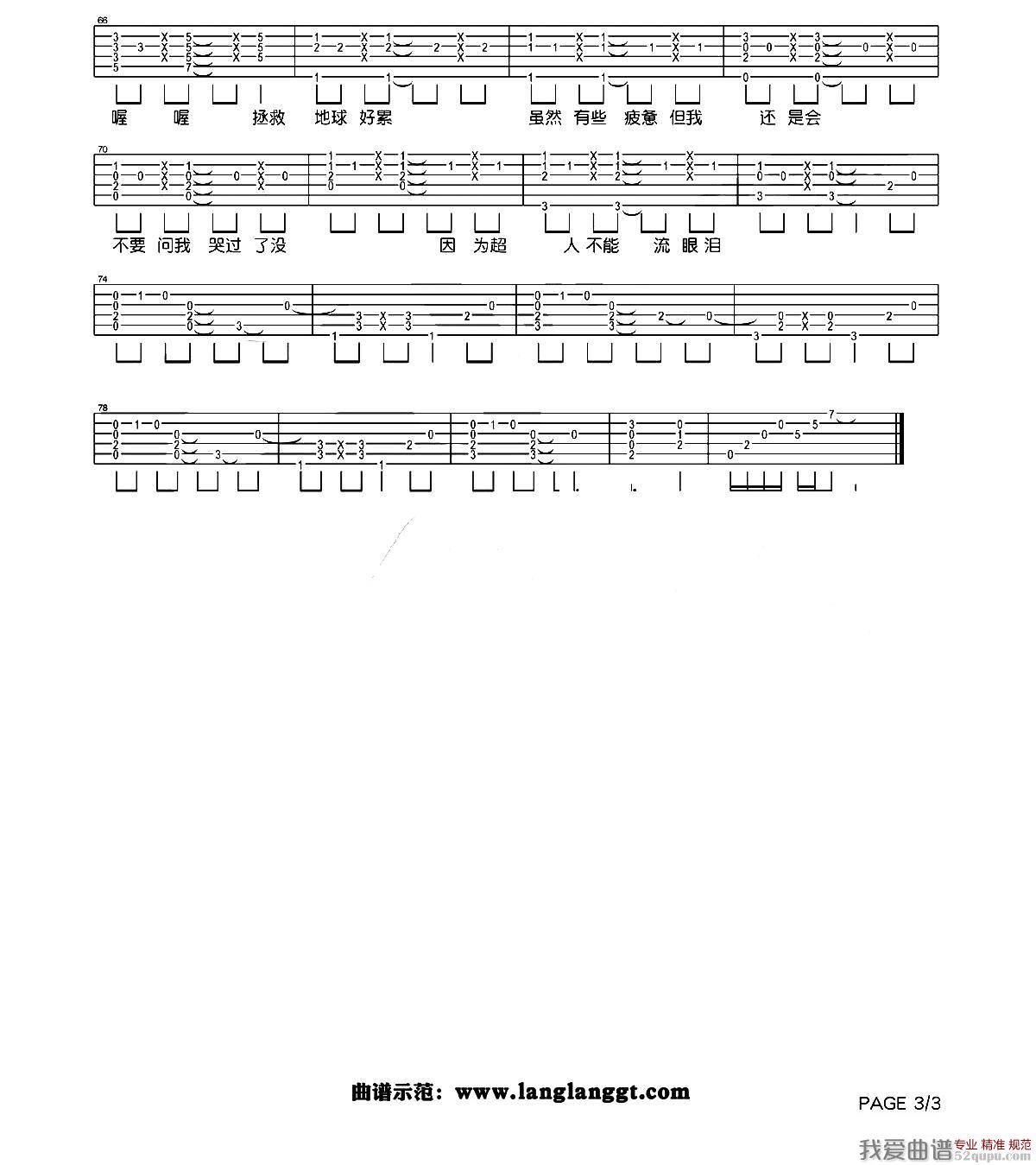 超人不会飞吉他谱,简单超人原版指弹曲谱,周杰伦高清流行弹唱/六线谱六线乐谱