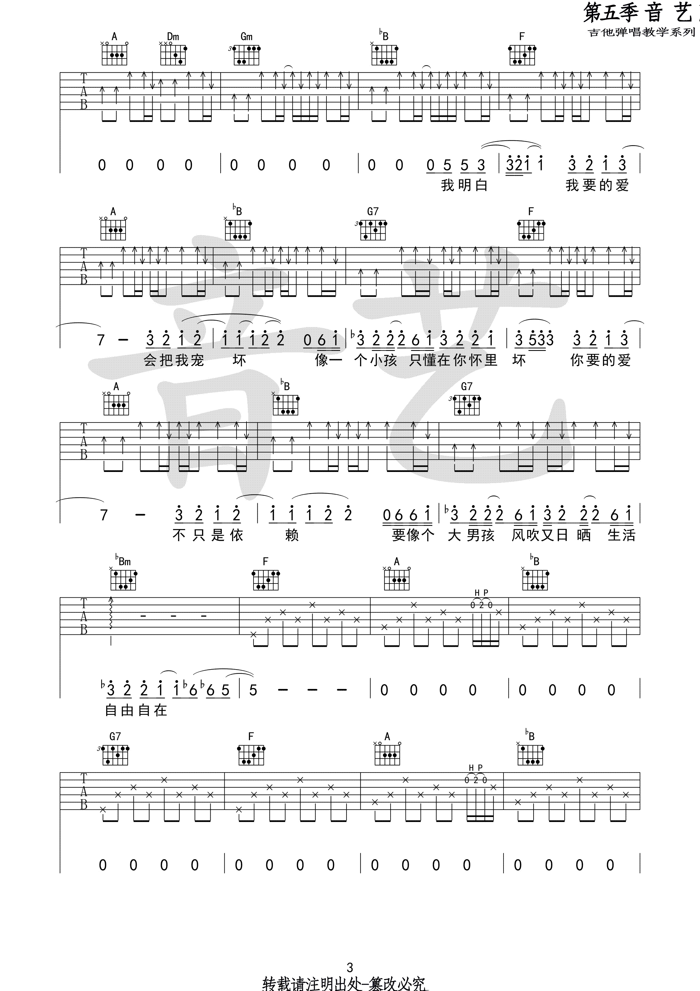 够爱吉他谱,取自演唱的歌曲是经典F调指弹编配的曲谱,非常好听的弹唱曲谱,下面3张高清曲谱由吉曲谱网为大家更新分享,有喜欢吉它的朋友欢迎关注!