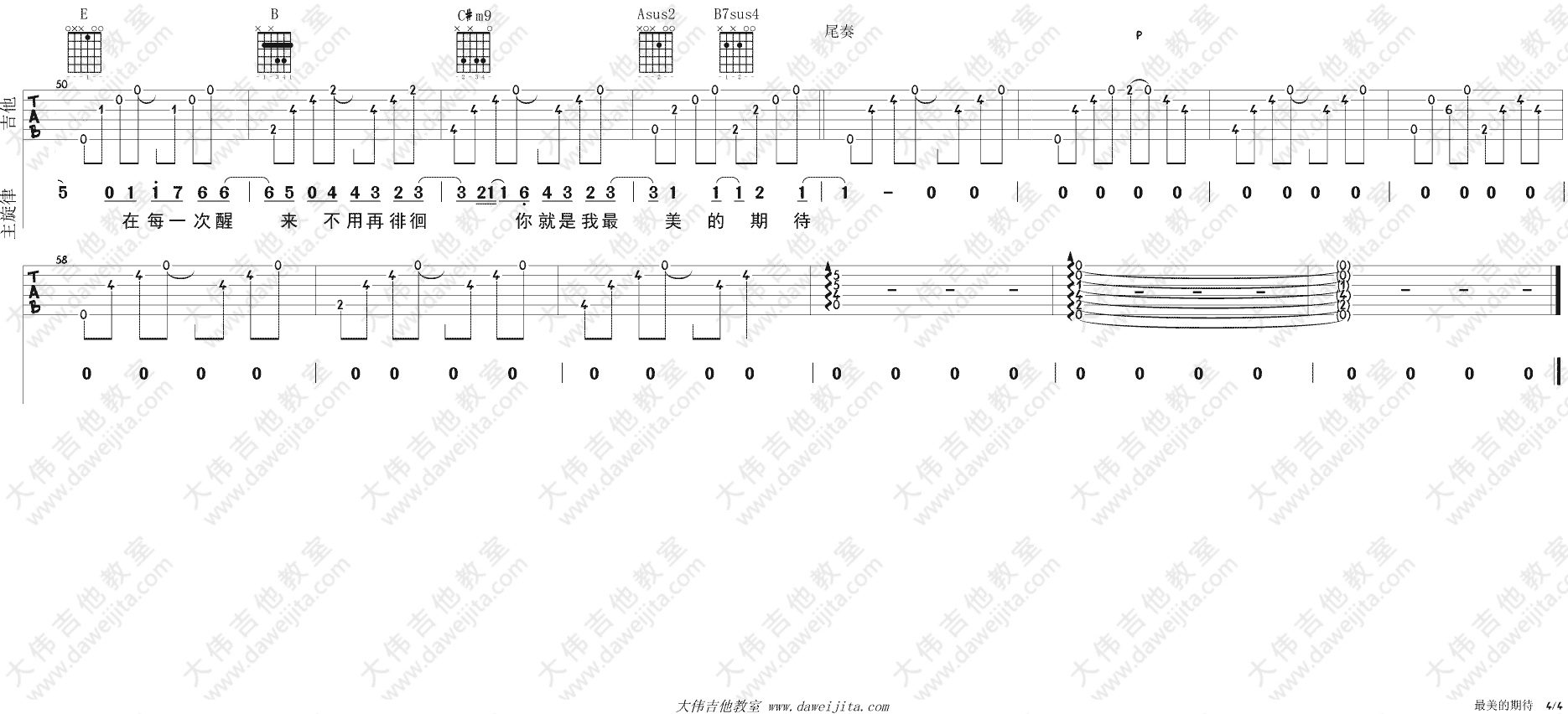 以上就是4/4节拍E调版的最美的期待弹唱简谱完整内容,希望这个简单六线高清图片教学谱能帮到您,也希望您能收藏本站,这里每天源源不断更新各种简单入门曲谱。