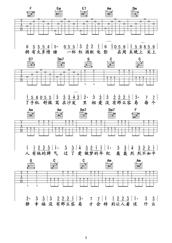 够爱吉他谱,取自演唱的歌曲是经典F调指弹编配的曲谱,非常好听的弹唱曲谱,下面3张高清曲谱由吉曲谱网为大家更新分享,有喜欢吉它的朋友欢迎关注!
