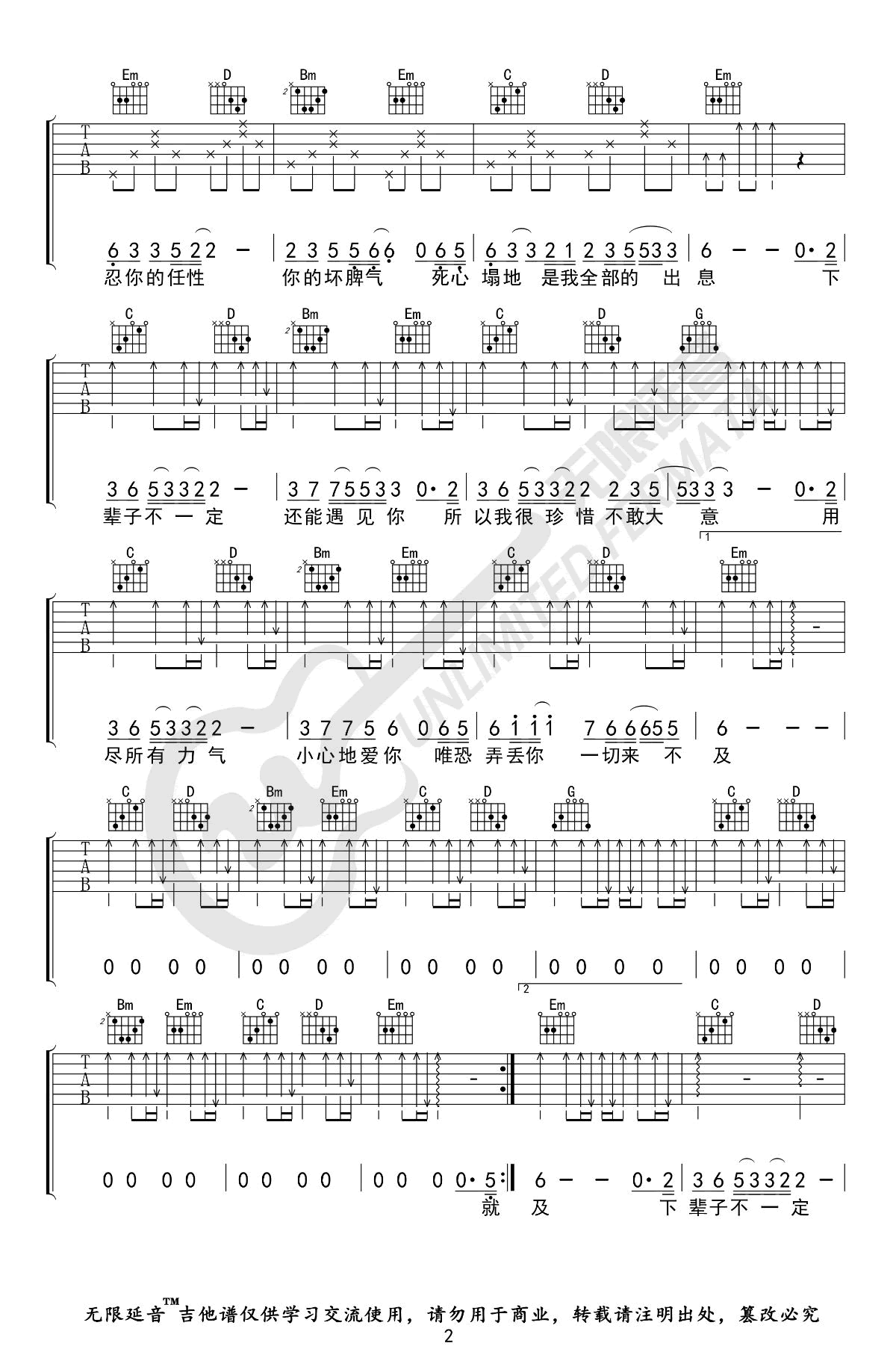 《下辈子不一定还能遇见你吉他谱》_陈雅森_G调 图二