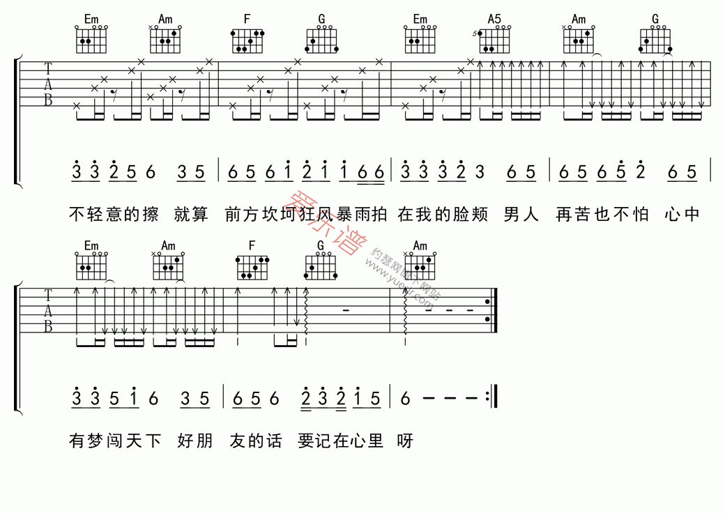《男人歌》吉他谱,由小沈阳演唱的,流行弹唱、高进,男人歌六线谱,C调制法,一共3张高清弹唱图片谱,采用'4/4拍子,拍速为60-80,单吉他,弹奏难度为:中级,吉他部落 jita2012.com整理上传。男人歌 吉他简谱男人歌 歌词有多久没见没打个电话我的朋友现在你们还好吗听说有人已成家有人还浪迹天涯岁月时光燃烧着青春年华听着忘情水长大看着偶像都变老了才知道要告诉你好
