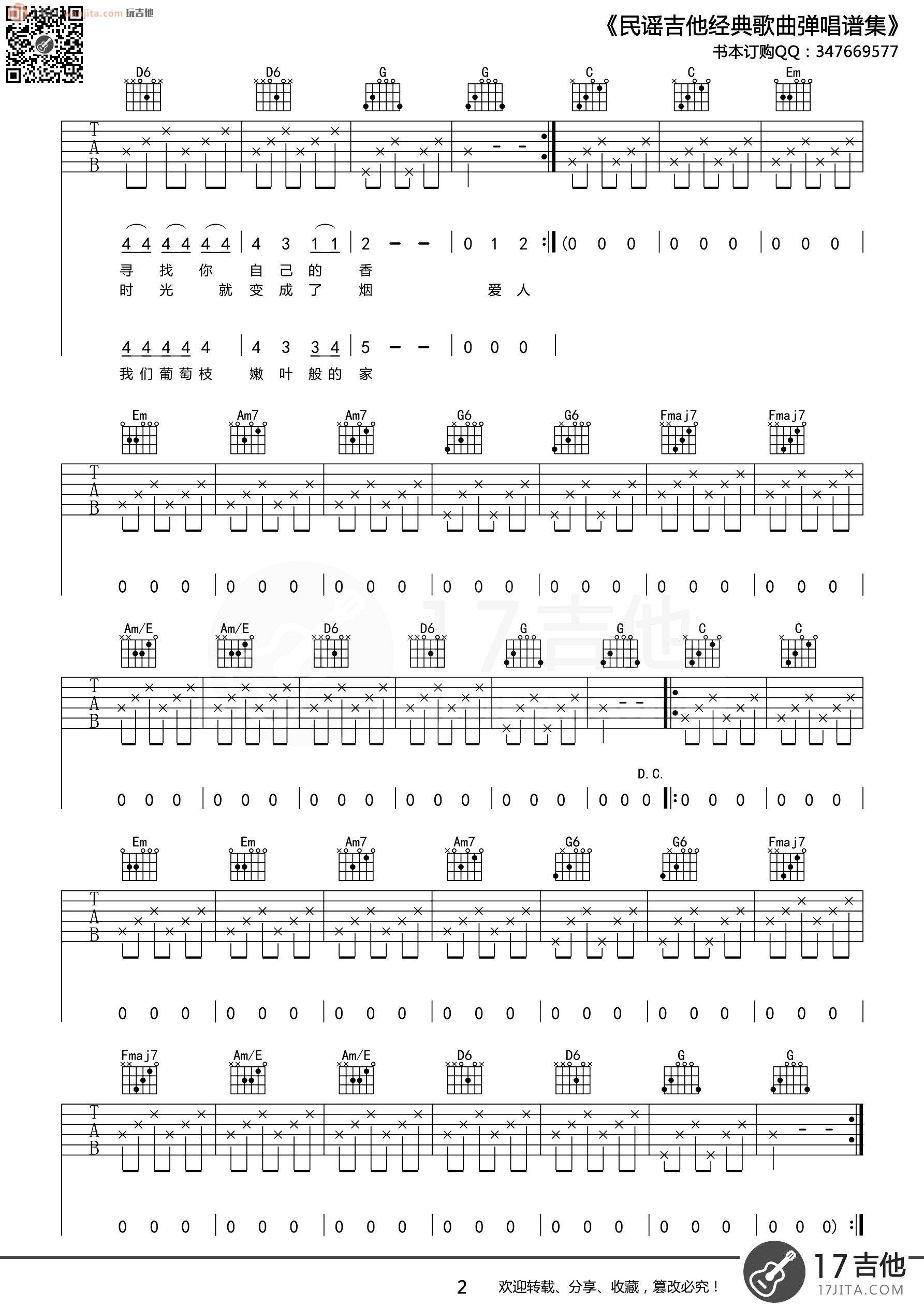 米店吉他谱,原版歌曲,简单C调弹唱教学,六线谱指弹简谱2张图
