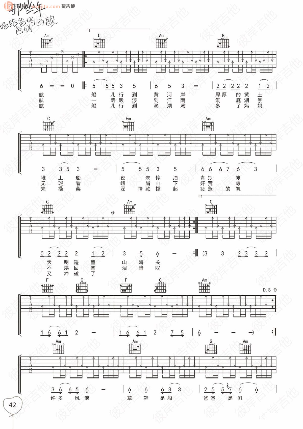 爸爸的草鞋吉他谱,原版歌曲,简单C调弹唱教学,六线谱指弹简谱2张图