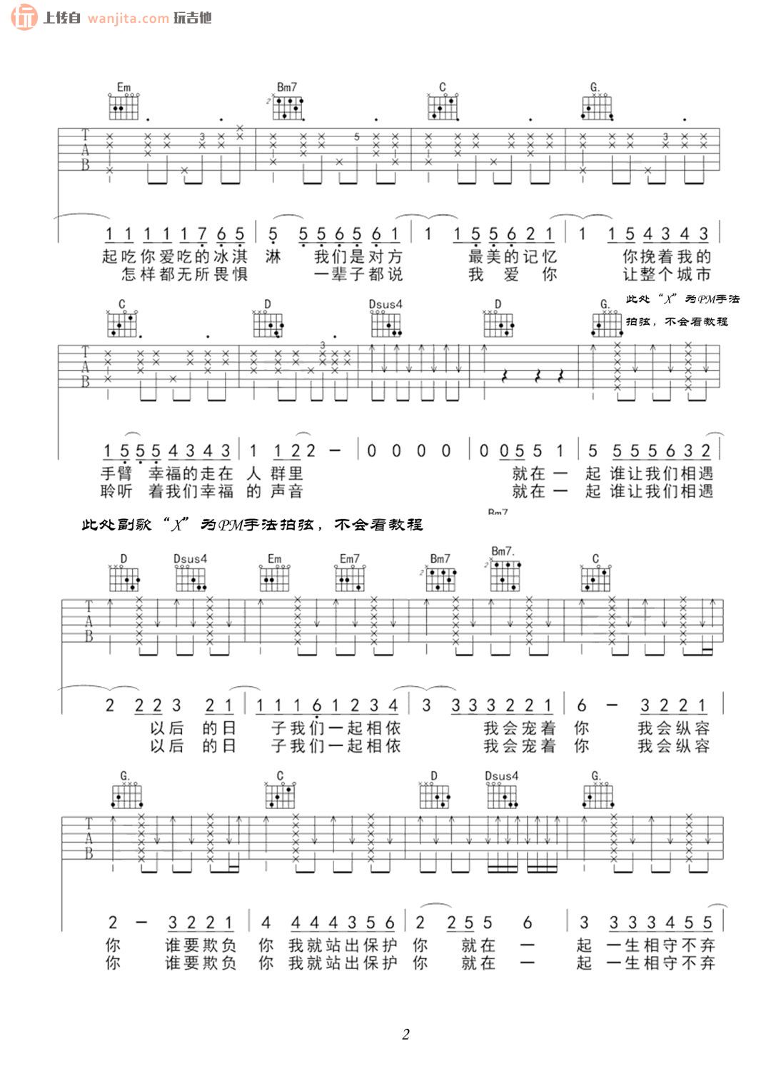 《最美情侣吉他谱》_白小白_G调 图二