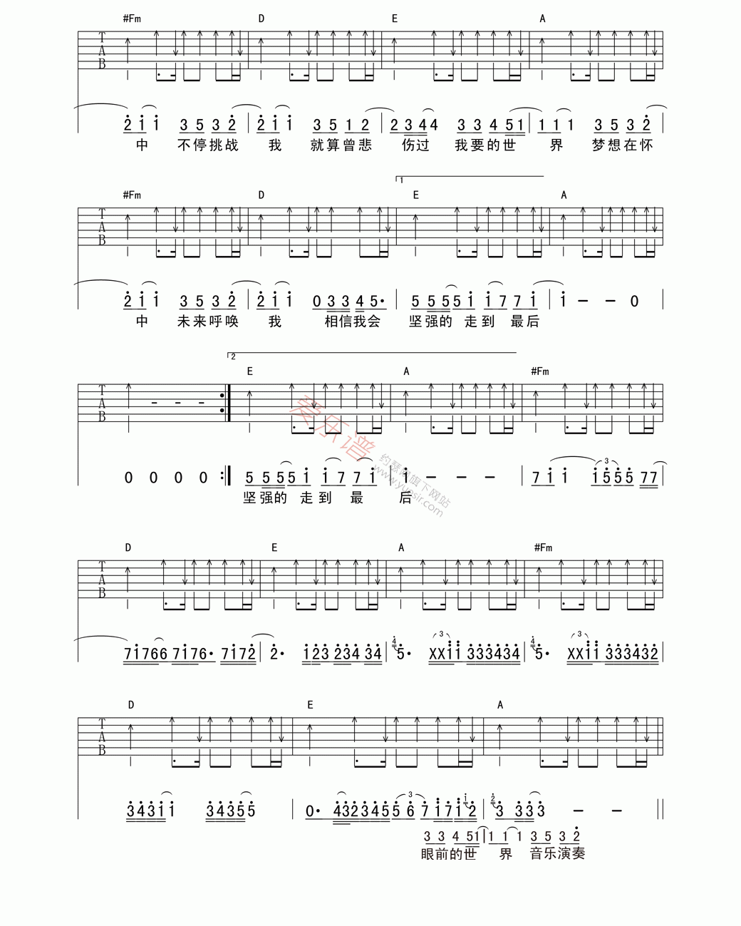 《我要的世界》吉他谱,由萧亚轩演唱的,流行弹唱,我要的世界六线谱,C调制法,一共2张高清弹唱图片谱,采用'4/4拍子,拍速为60-80,单吉他,弹奏难度为:中级,吉他部落 jita2012.com整理上传。我要的世界 吉他简谱我要的世界 歌词 作曲 : 陈伟 作词 : 萧亚轩远方天空云层遮盖前往方向迷失在黑暗之中天使问我手中紧握不放的是什麽我说寻找梦想的灯火有时我会失去力量再艰