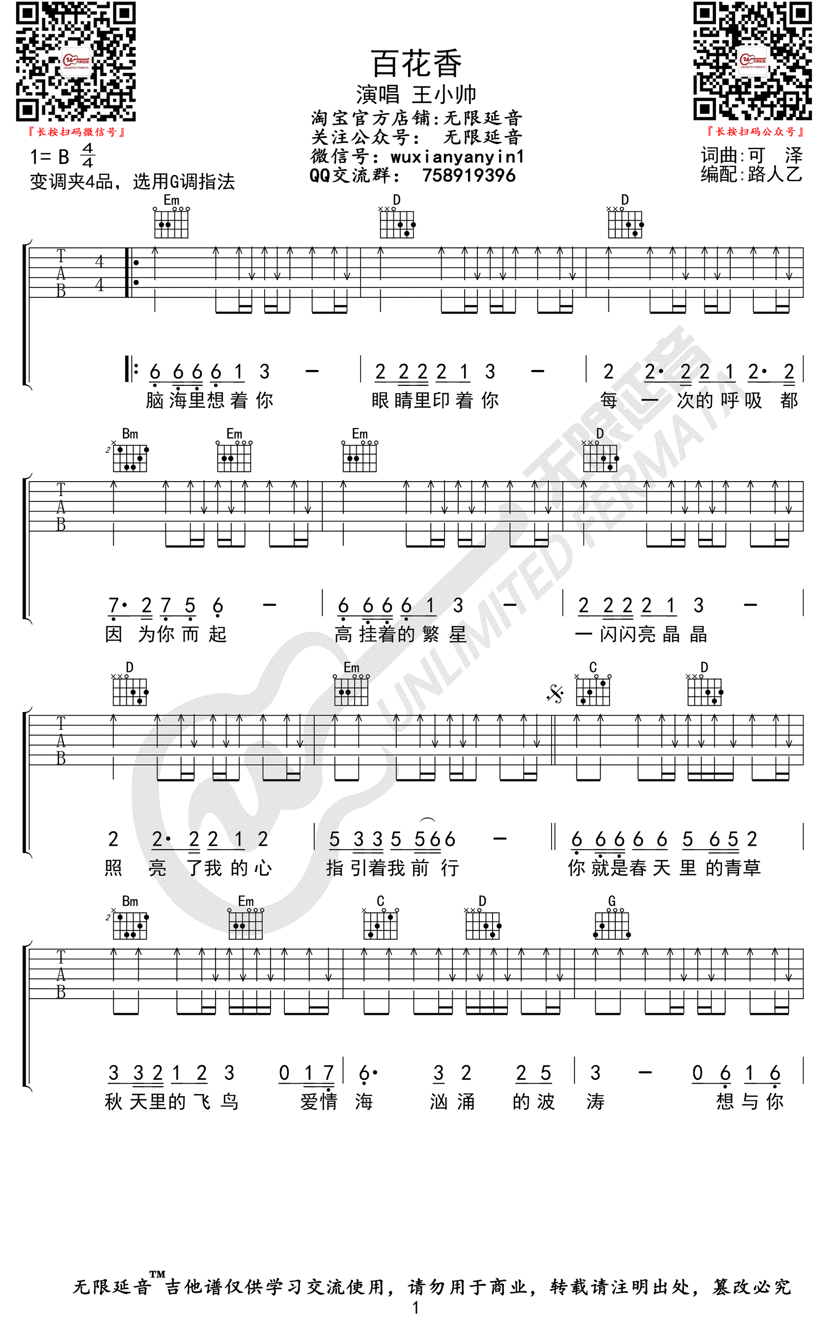 百花香吉他谱,魏新雨原唱,王小帅和要不要买菜相继翻唱,使其成为刷屏网络的热门歌曲。百花香六线谱,原调B,选用G调指法,变调夹夹第四品,高清弹唱图片谱,无限延音编配出品,吉他部落 jita2012.com整理上传分享。一首广场舞流行风的歌曲,节奏欢快,听一遍就深深地爱上了的开心轻盈的旋律,你就是春天里的青草,秋天里的飞鸟!《百花香》吉他谱,王小帅厕所弹