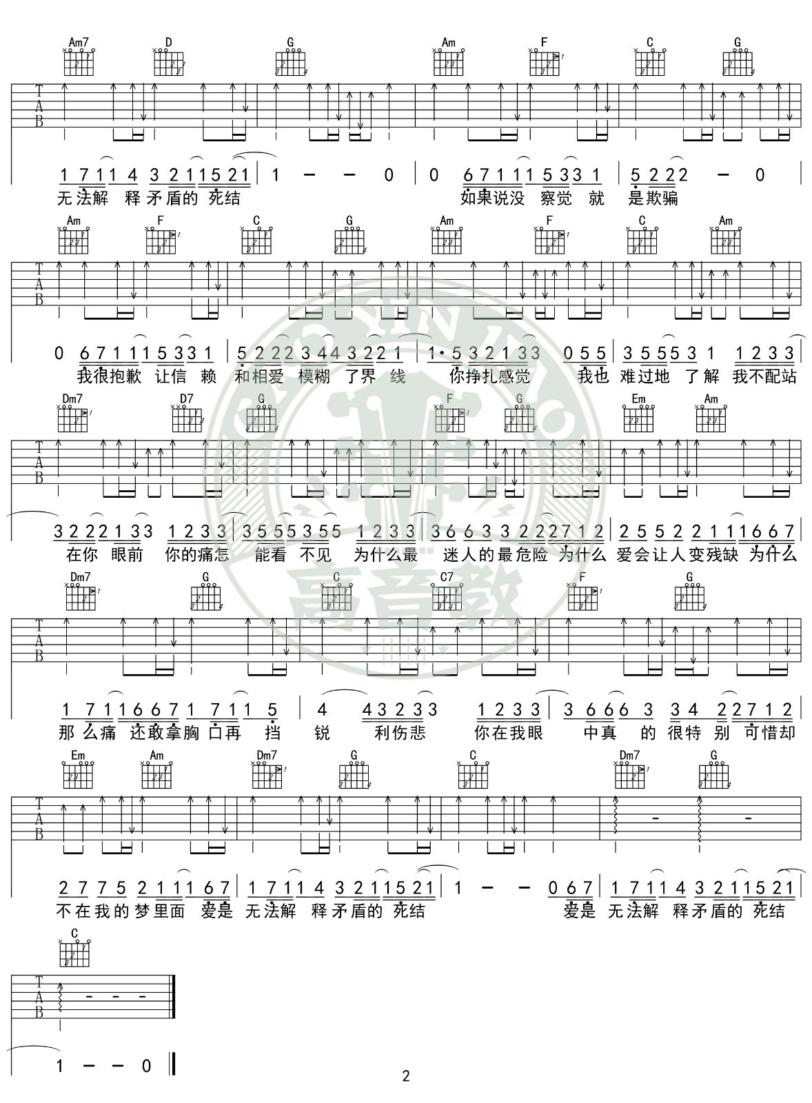 歌曲选自《迷人的危险》专辑非常好听的弹唱曲谱,下面2张高清曲谱由吉它谱网为大家更新分享,有喜欢吉它的朋友欢迎关注!