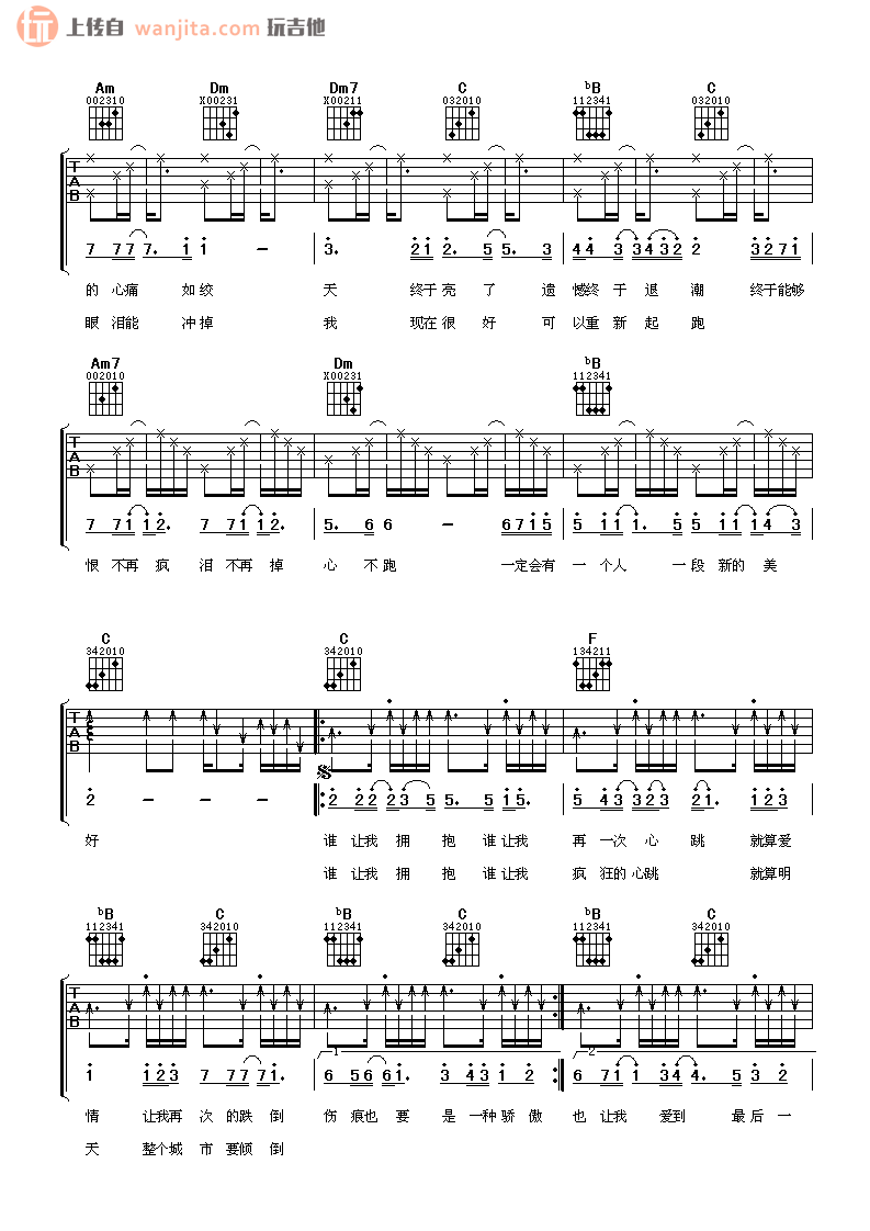 够爱吉他谱,取自演唱的歌曲是经典F调指弹编配的曲谱,非常好听的弹唱曲谱,下面3张高清曲谱由吉曲谱网为大家更新分享,有喜欢吉它的朋友欢迎关注!