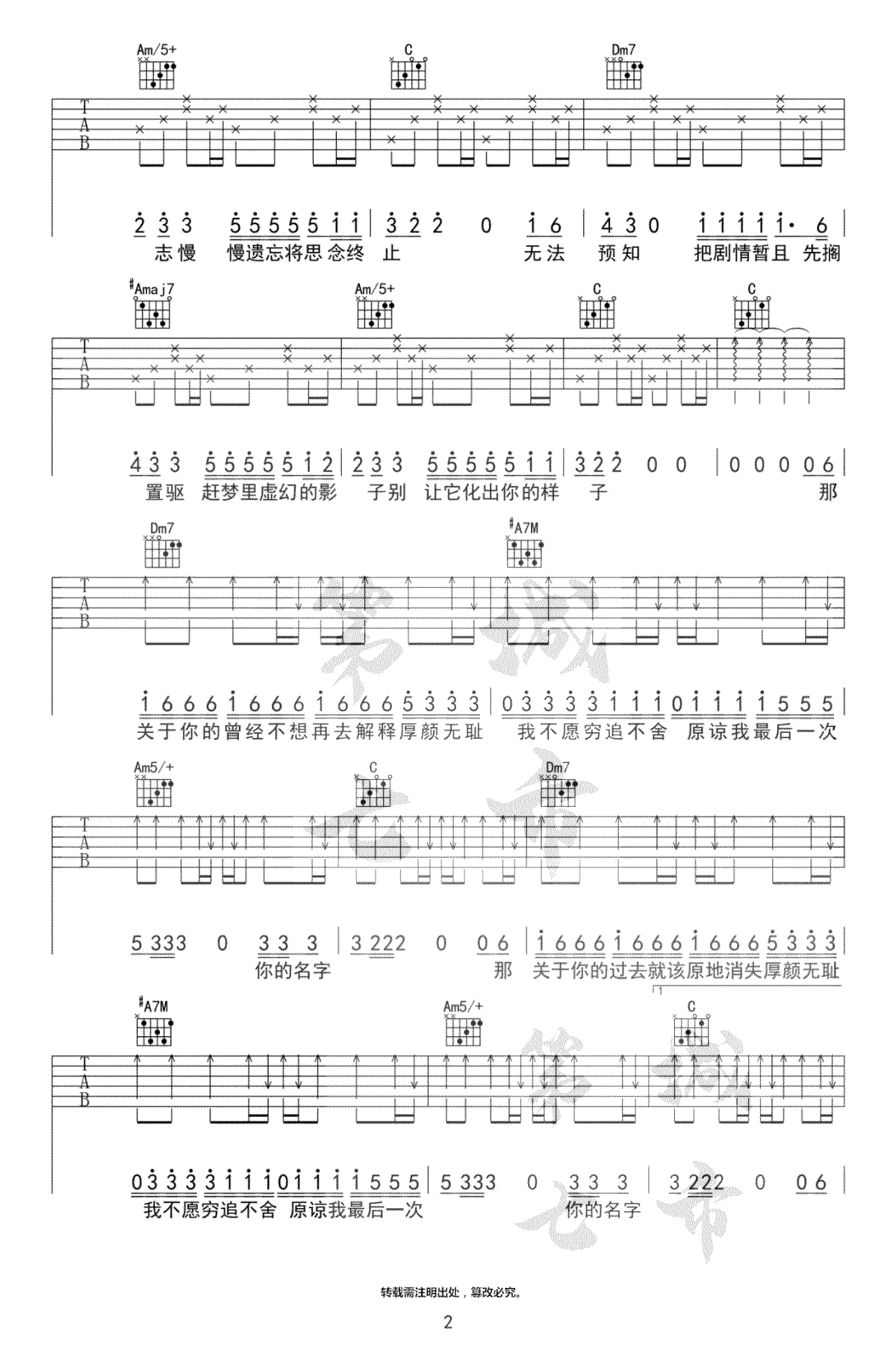 厚颜无耻吉他谱,毕萝刘涛歌曲,简单指弹教学简谱,第七城市六线谱图片