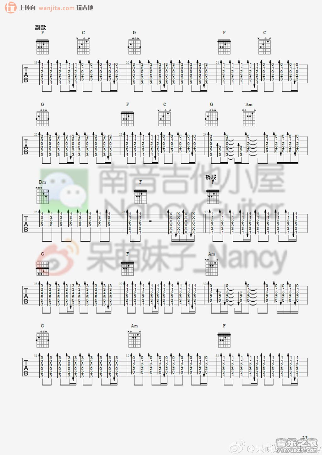 Avril艾薇儿WishYouW吉他谱,简单图片原版指弹曲谱,Avril艾薇儿高清六线乐谱