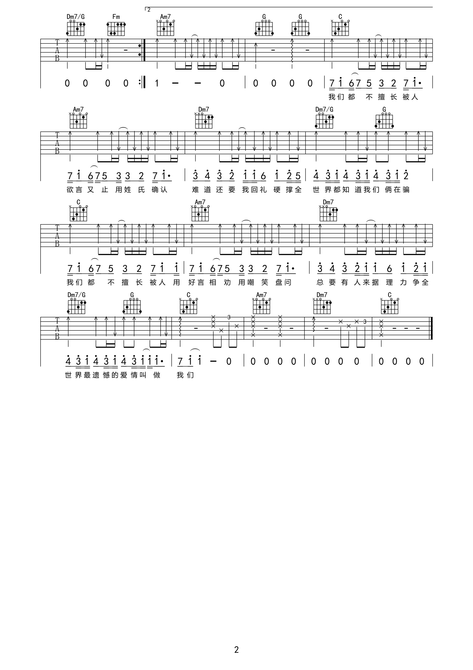 被人吉他谱,原版歌曲,简单C调弹唱教学,六线谱指弹简谱2张图