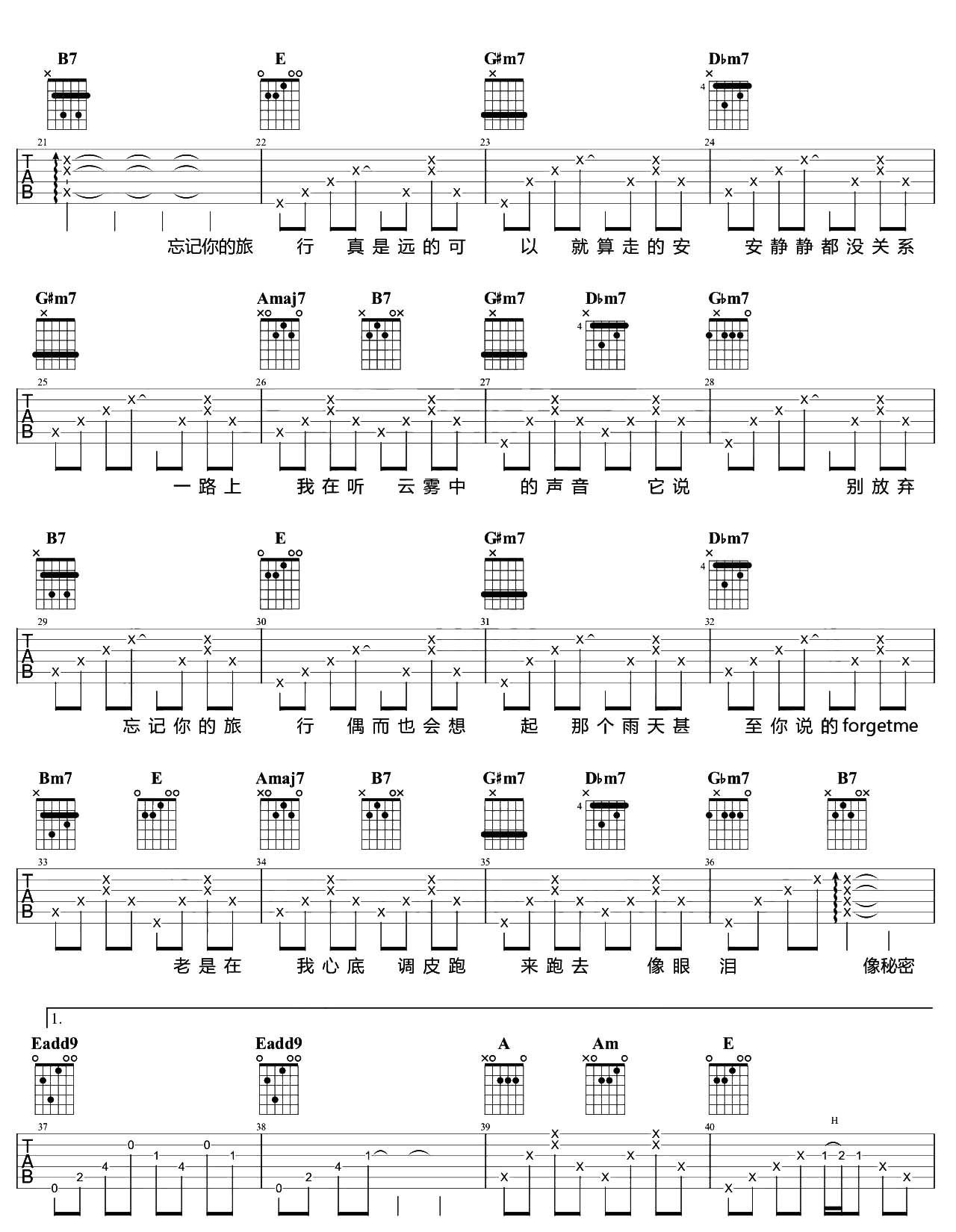 《旅行中忘记吉他谱》_袁娅维_E调 图二