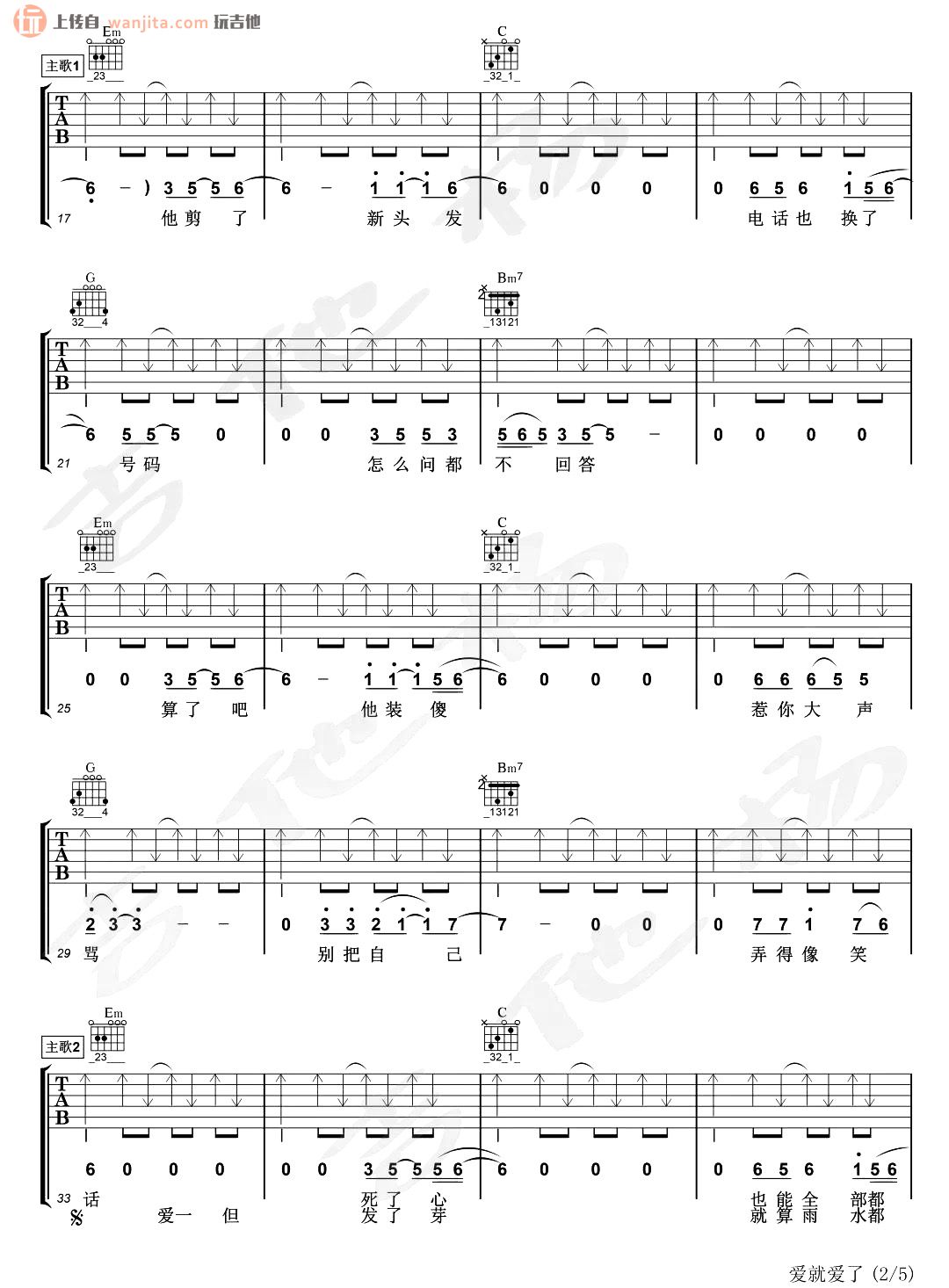 爱就爱了吉他谱,原版歌曲,简单G调弹唱教学,六线谱指弹简谱2张图