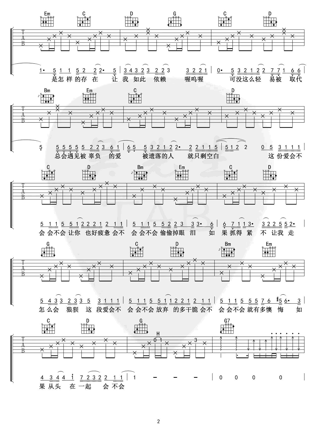 会不会吉他谱,原版歌曲,简单G调弹唱教学,六线谱指弹简谱4张图
