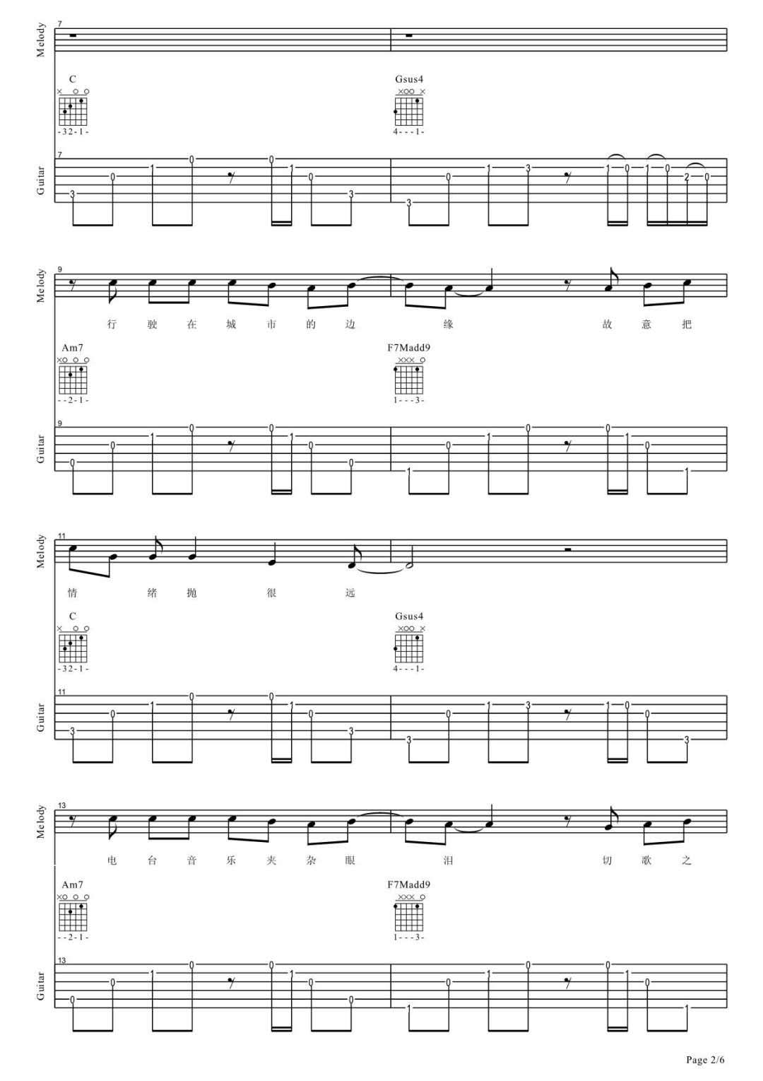 解药吉他谱,原版歌曲,简单C调弹唱教学,六线谱指弹简谱6张图