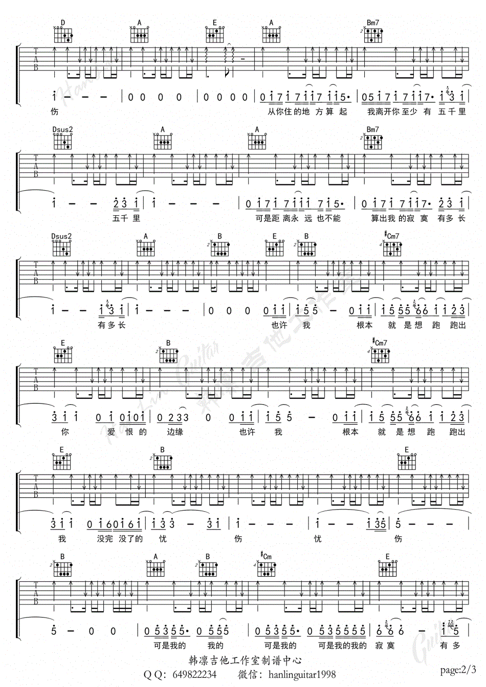 《寂寞有多长吉他谱》_苏立生_A调 图二