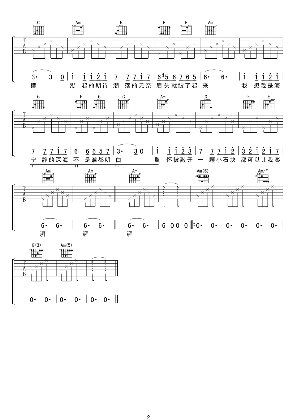 分享我想我是海吉他谱,我想我是海由黄磊演唱,发行时间是1998-07-01,收录于专辑《我想我是海》, ;