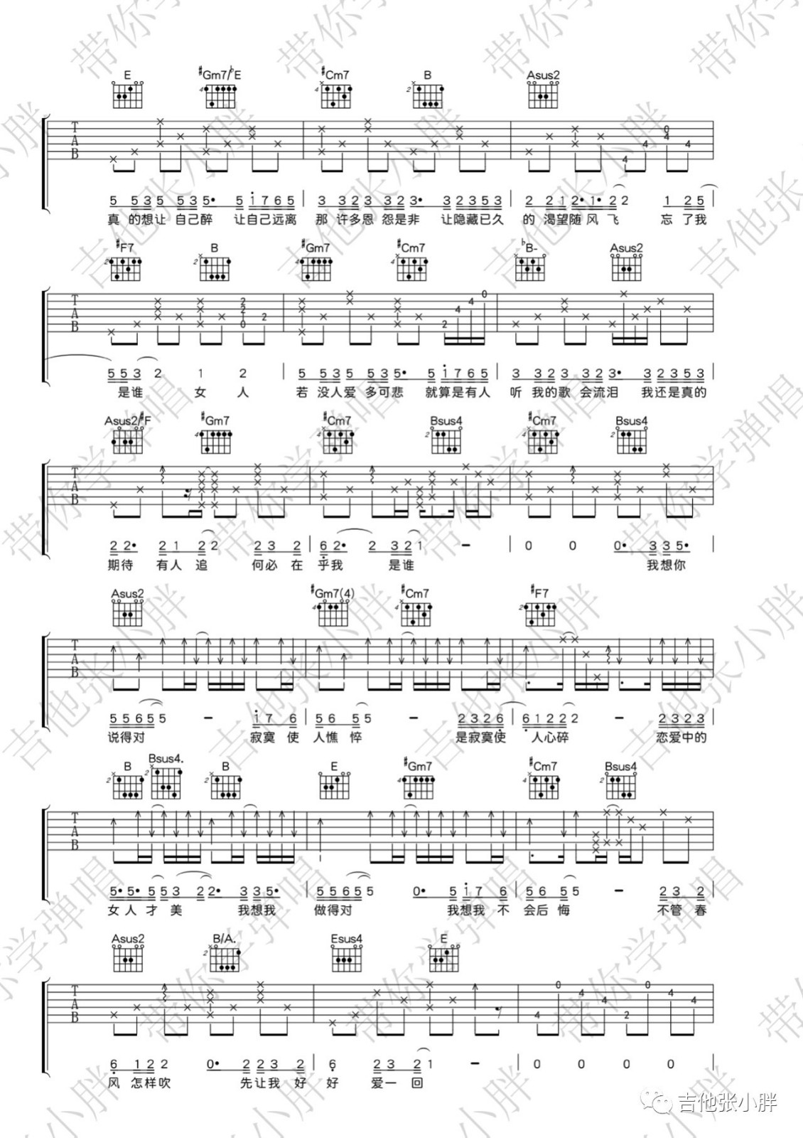 不必在乎我是谁吉他谱,原版歌曲,简单E调弹唱教学,六线谱指弹简谱4张图